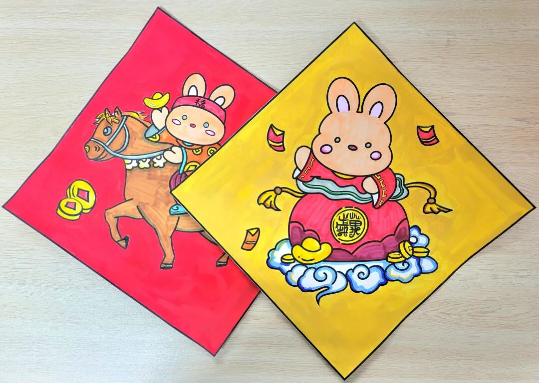 本周六,王宫展区特意为大家准备了可以DIY的萌兔年画。可爱兔的造型和院藏文物结合在一起,将斑斓的色彩填涂在年画上。既能留下南越王博物院旅行的印记,又能在春节贴上自己涂色的年画,这种感觉真的很赞呢!