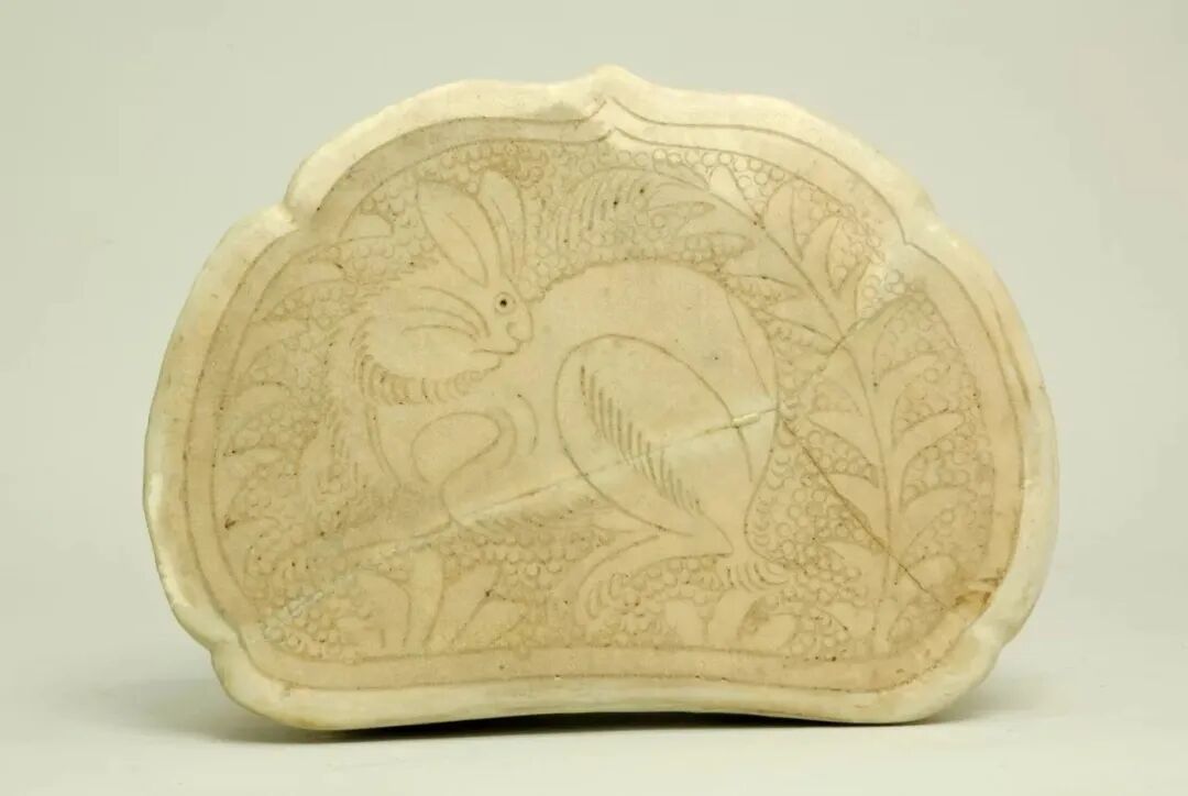 珍珠地划兔纹如意形枕|北宋河南巩县窑