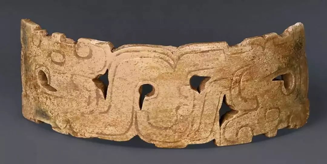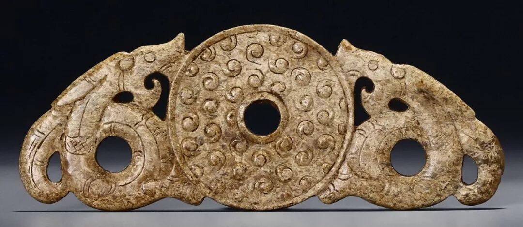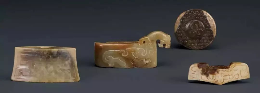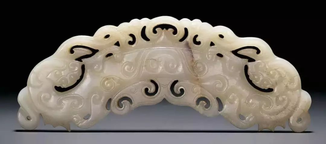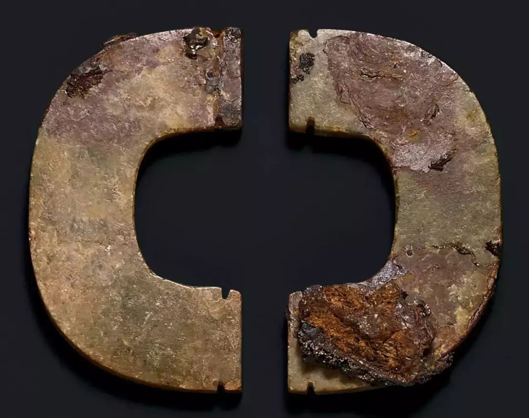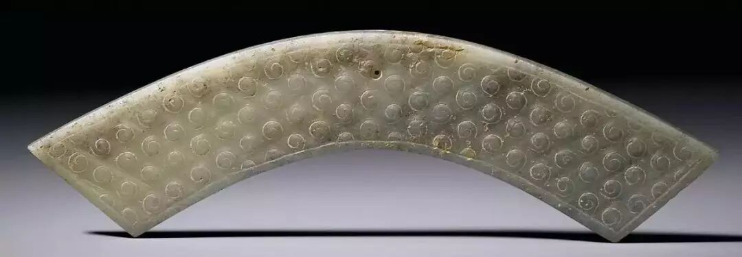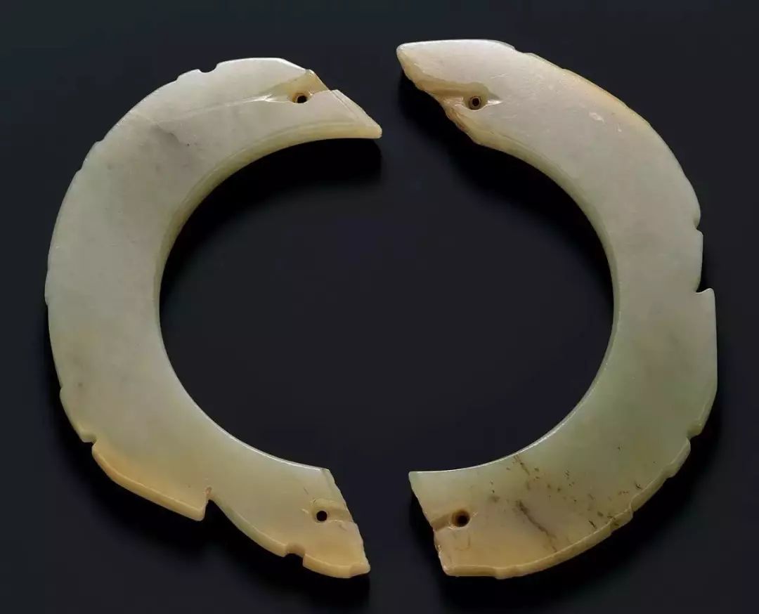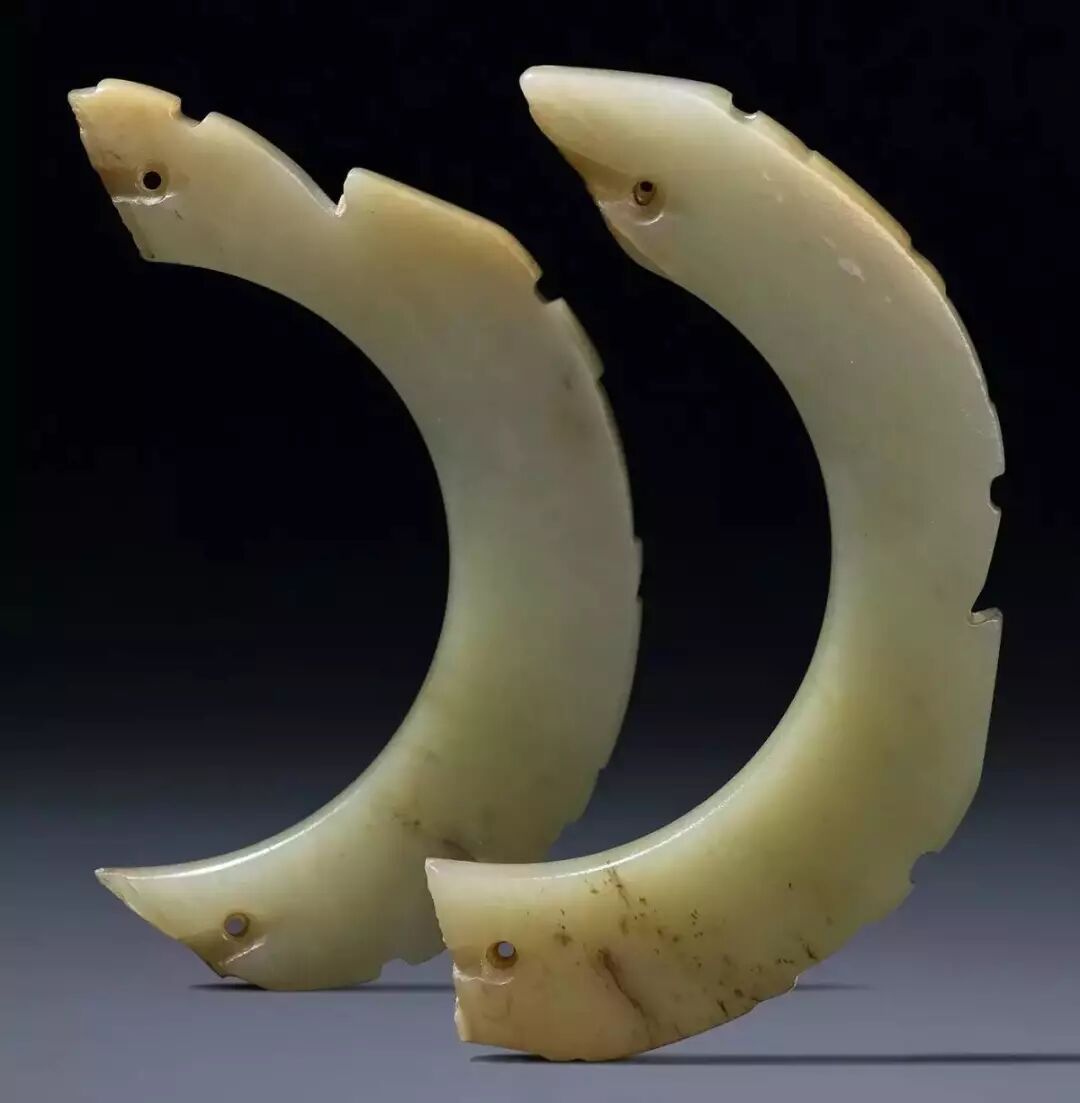 东汉时期,由于政治动荡,玉璜作为礼器制作规模和数量渐衰微,此时玉璜,开始与玉觹、玉韘一起,逐步变形为佩。