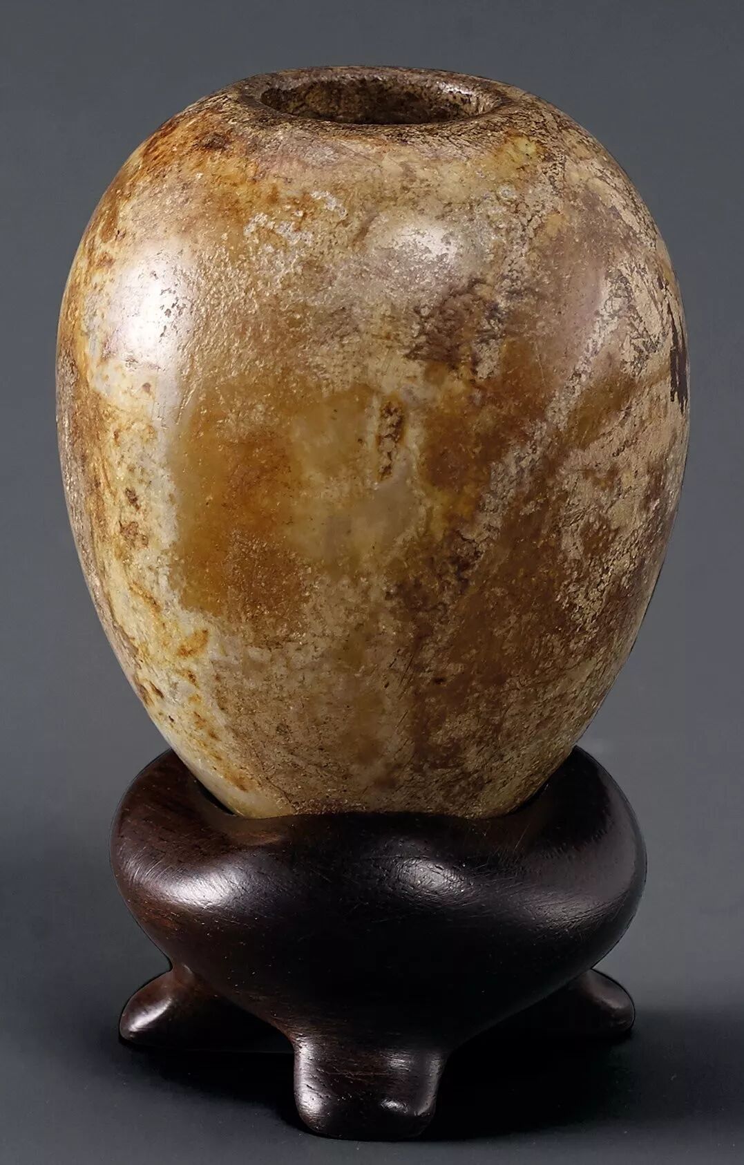 整器结合浮雕、线刻等多种技法立雕而成,雕工简练娴熟,着重刻划熊的双眼及姿体动态,在写实的基础上力求神似。![]()