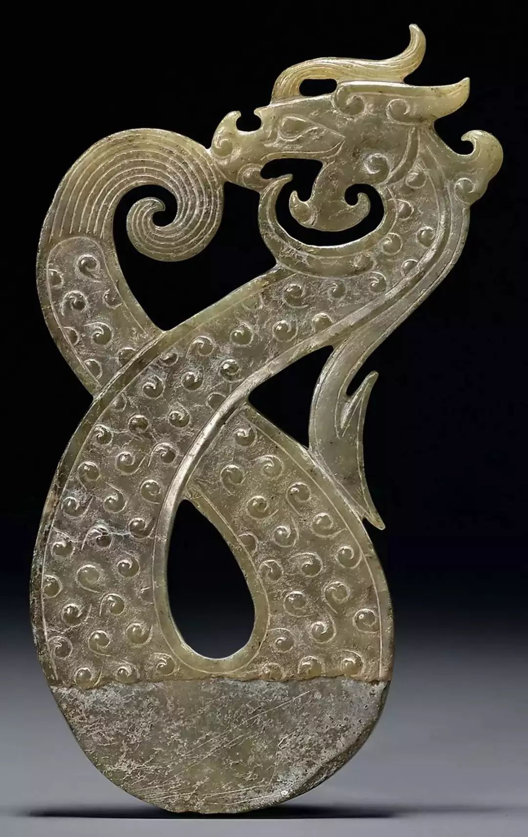 《国语·周语》:“周之兴也,鸣于岐山。”凤鸟形象在西周得到特别的尊崇,就像是祖灵一般。本佩以凤为主体、龙为辅,造型奇异,纹饰精美,是件形神兼俱之佳品。![]()
