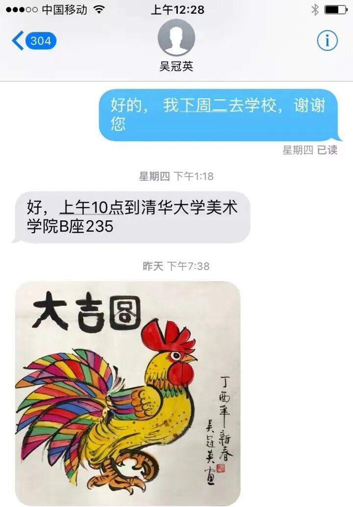 一个月后,吴老师就给我发短信,让我到清华大学美术学院的工作室取作品,那是我第一次近距离和吴老师交流,吴老师风趣幽默、知识渊博、温文尔雅,既有学者博学广智的一面,又有艺术家的奇思妙想,就像他的作品一样,具有丰富而别样的色彩。