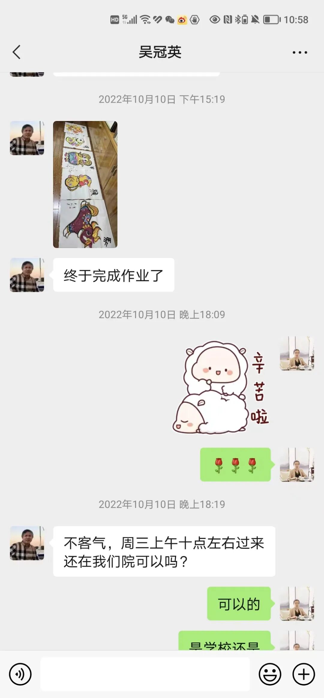 2022年10月10日,吴冠英老师打电话让我去他家里,他把剩下的六幅生肖作品交到了我手上。每一幅作品都非常漂亮,让人爱不释手,真是太感动,心里默默地念着“老师您辛苦了”,我从来没有奢望吴老师能一下把所有的生肖画完,当看到画完的作品,心里说不出的激动。