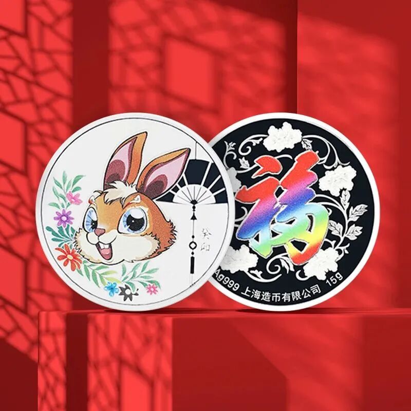新年就要有新年的样子,今天小钱带来的是由上海造币有限公司发行的2023兔年彩色金银章。
