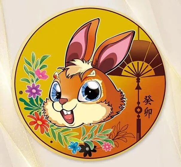 兔年彩色金、银章以福兔为主景,在中华传统吉祥意象的扇子、吉祥花卉映衬下更显活泼可爱,动静之间彰显国潮风范。