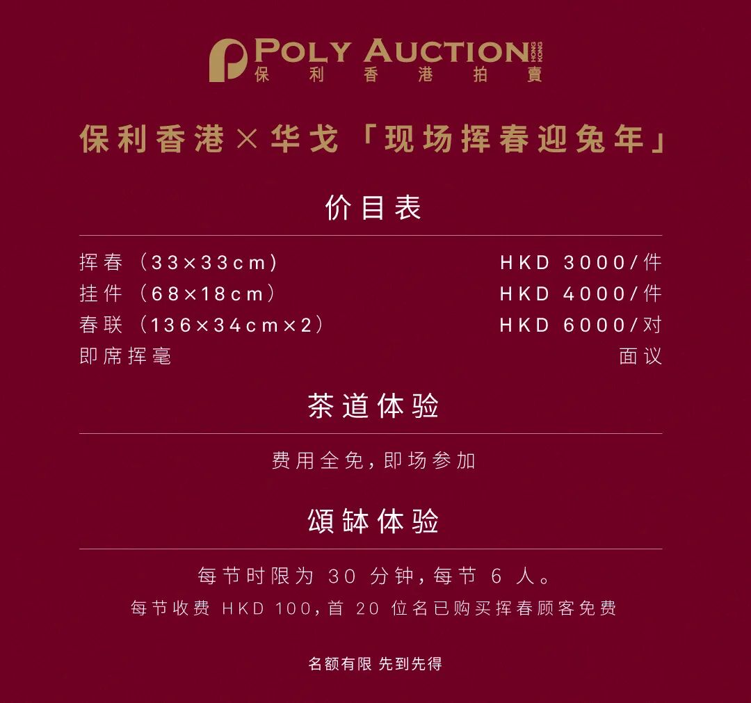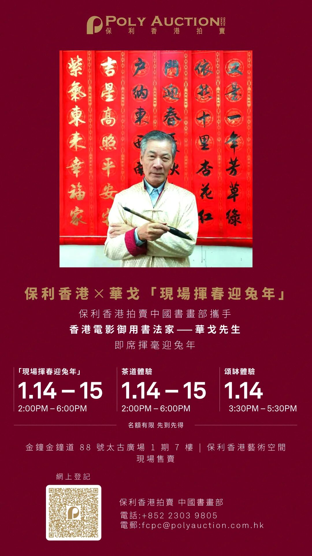 玉兔迎新春!新春佳节来临之际,保利香港中国书画部荣幸邀请香港电影御用书法家华戈先生,于下周末亲临保利艺术空间,为藏家挥毫泼墨,呈现专属您的兔年挥春。