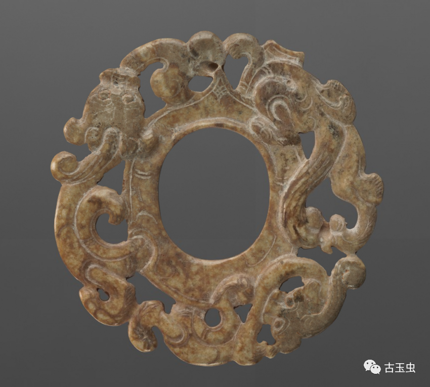汉 三螭纹玉璧(正面) 美国哈佛艺术博物馆藏