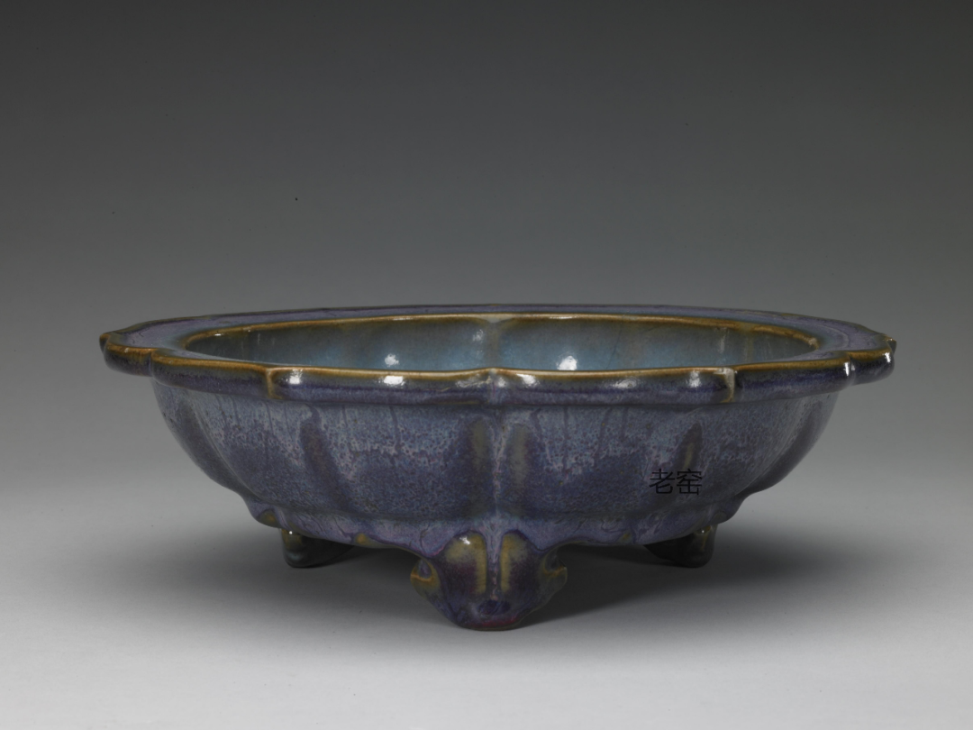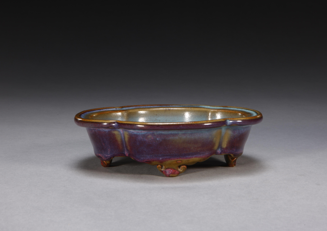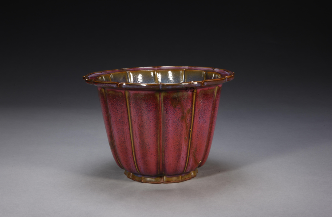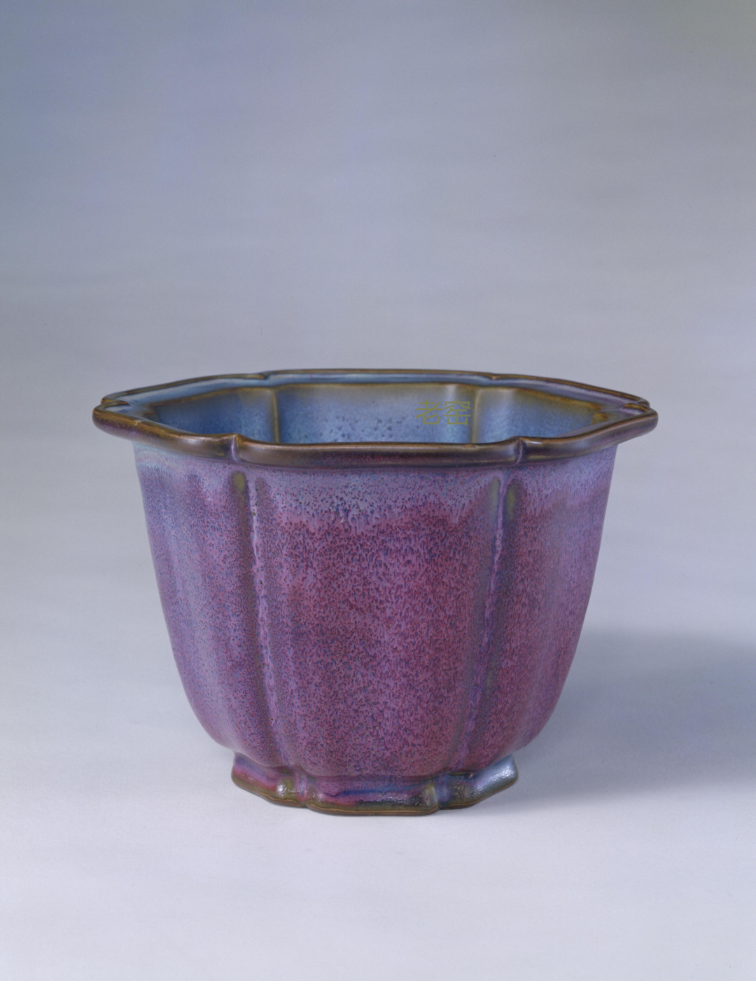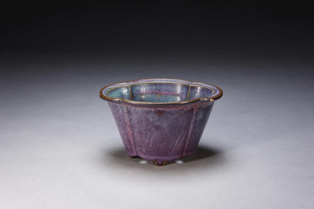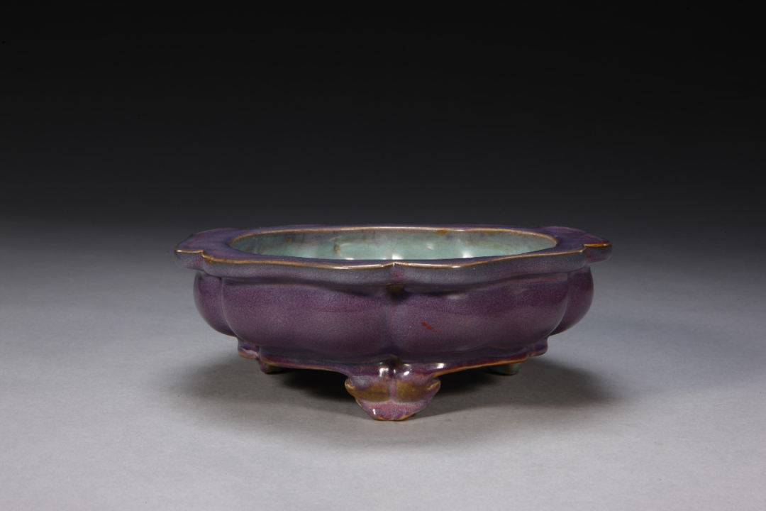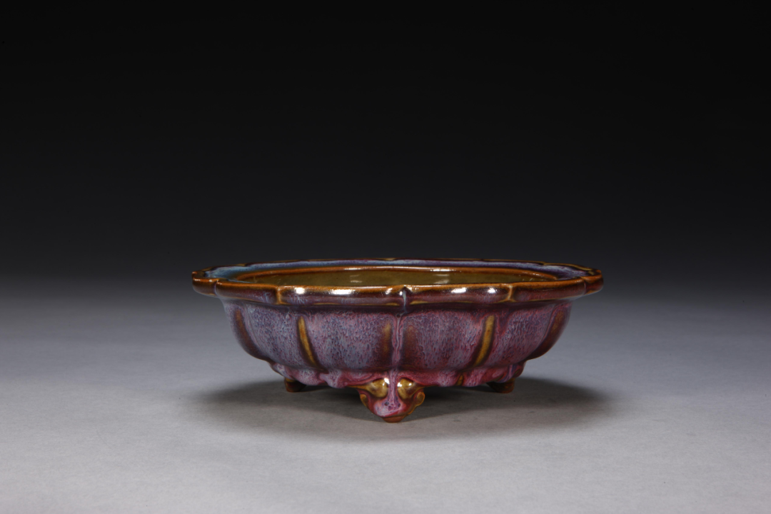 元/明 钧窑玫瑰紫葵式花盆 「三」字款