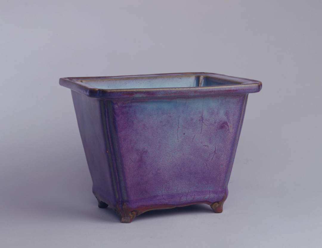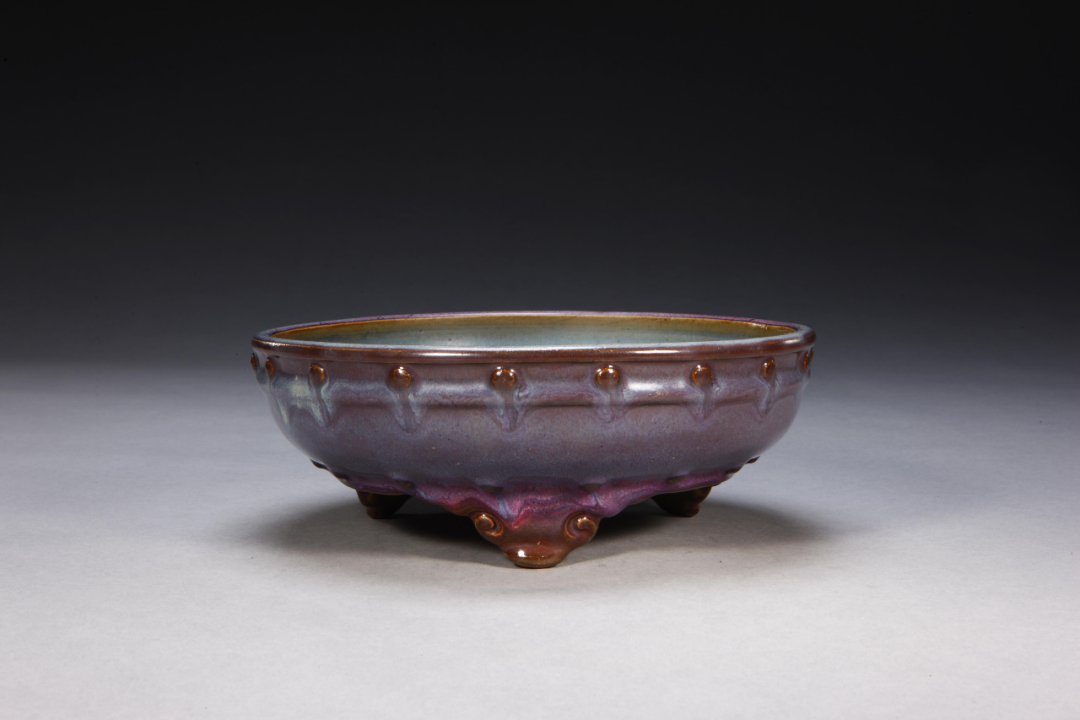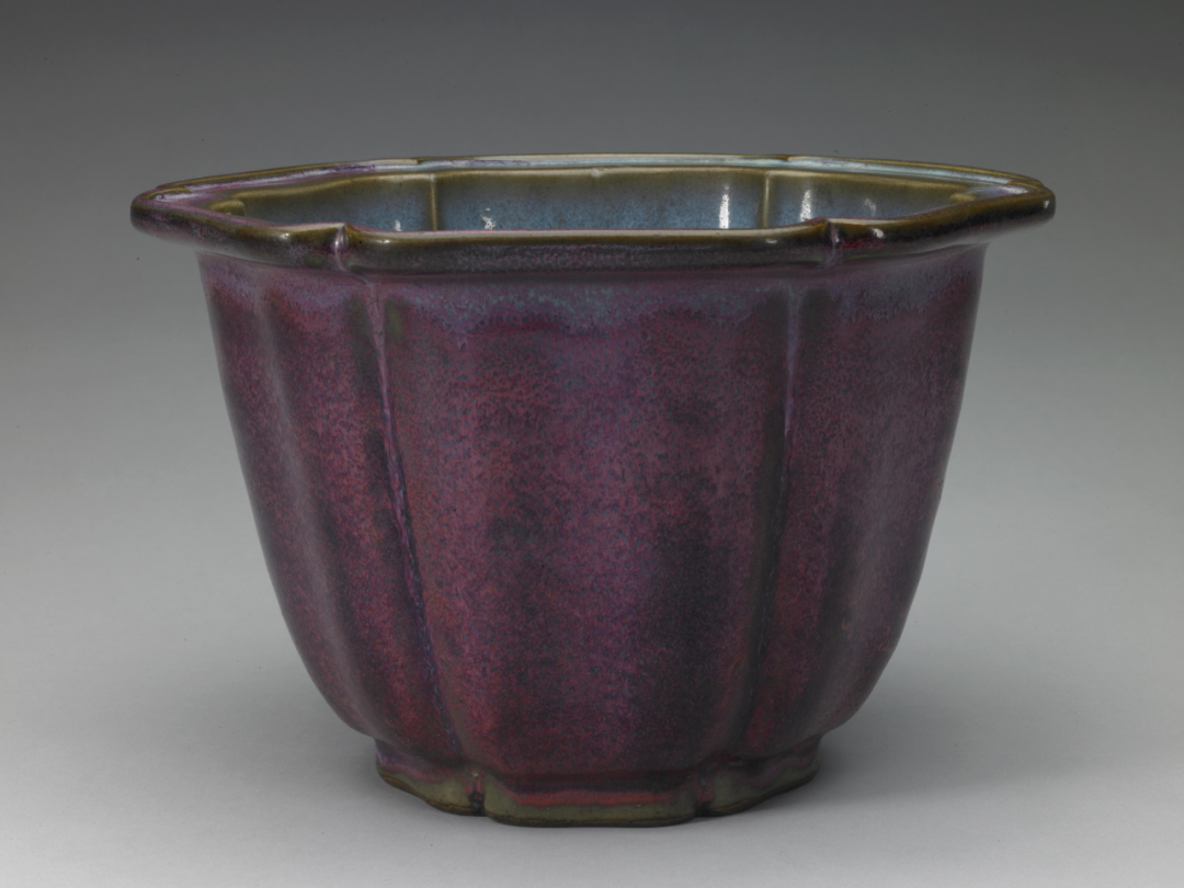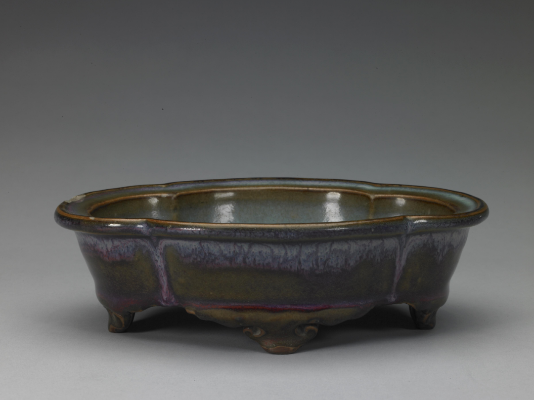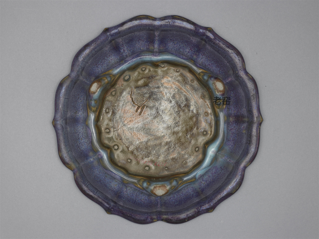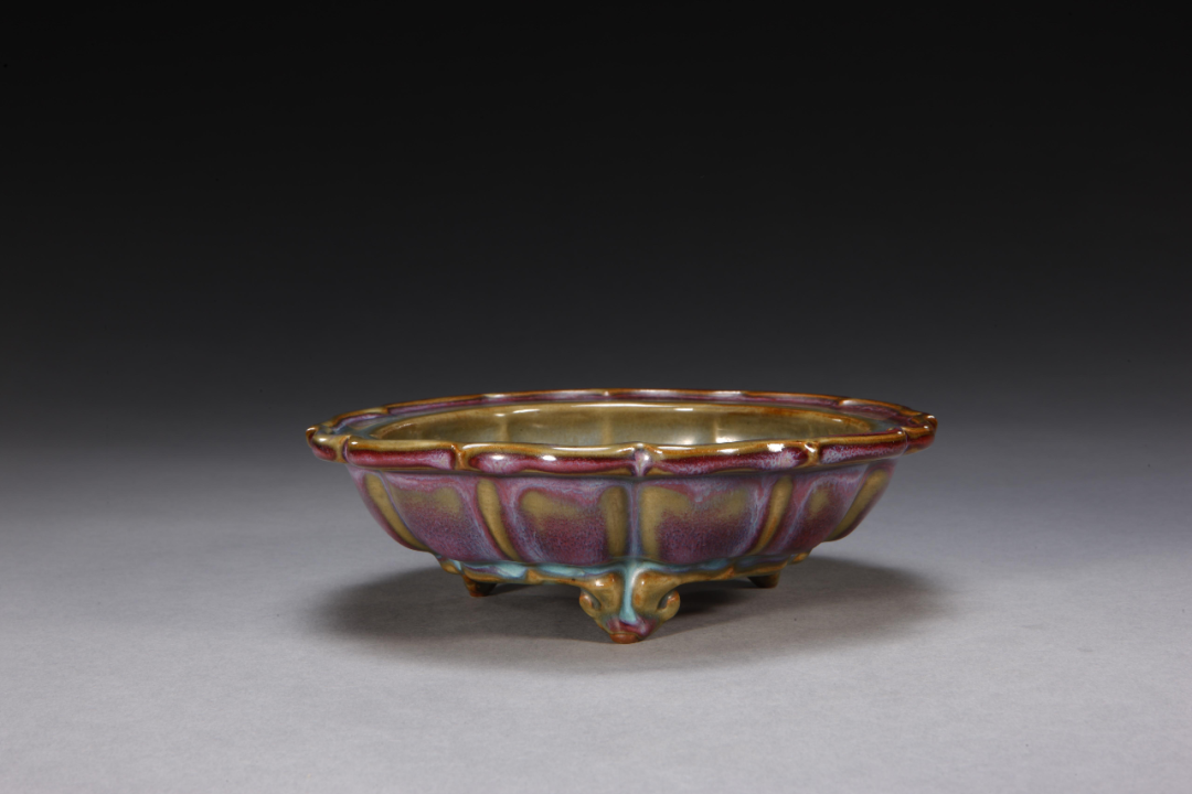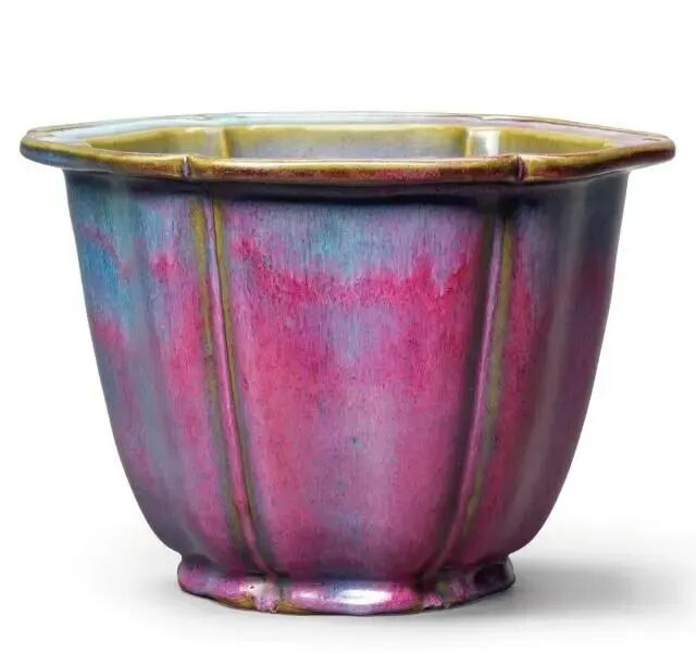 元/明 钧窑玫瑰紫葵式花盆 「三」字款