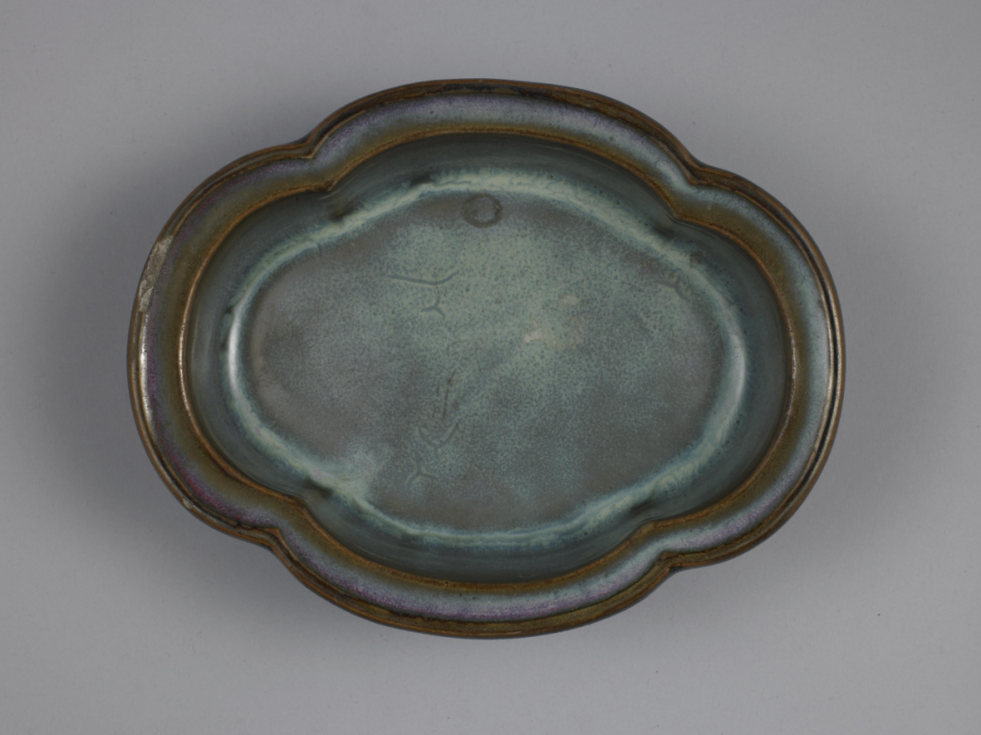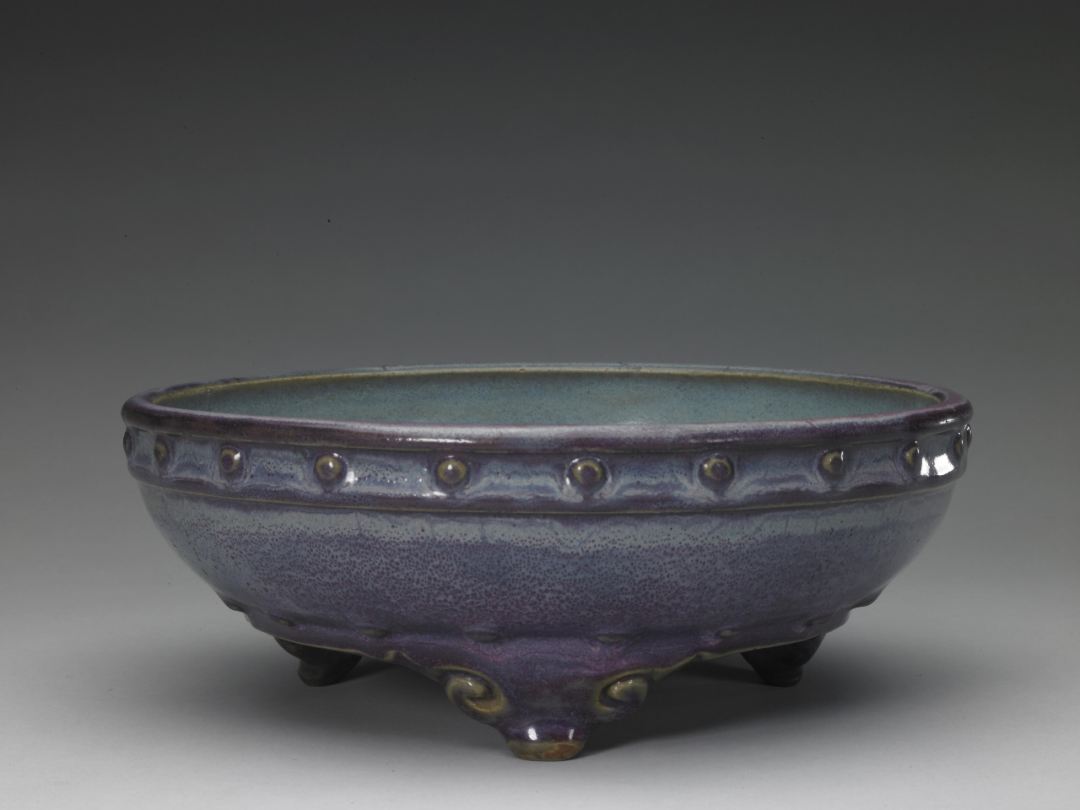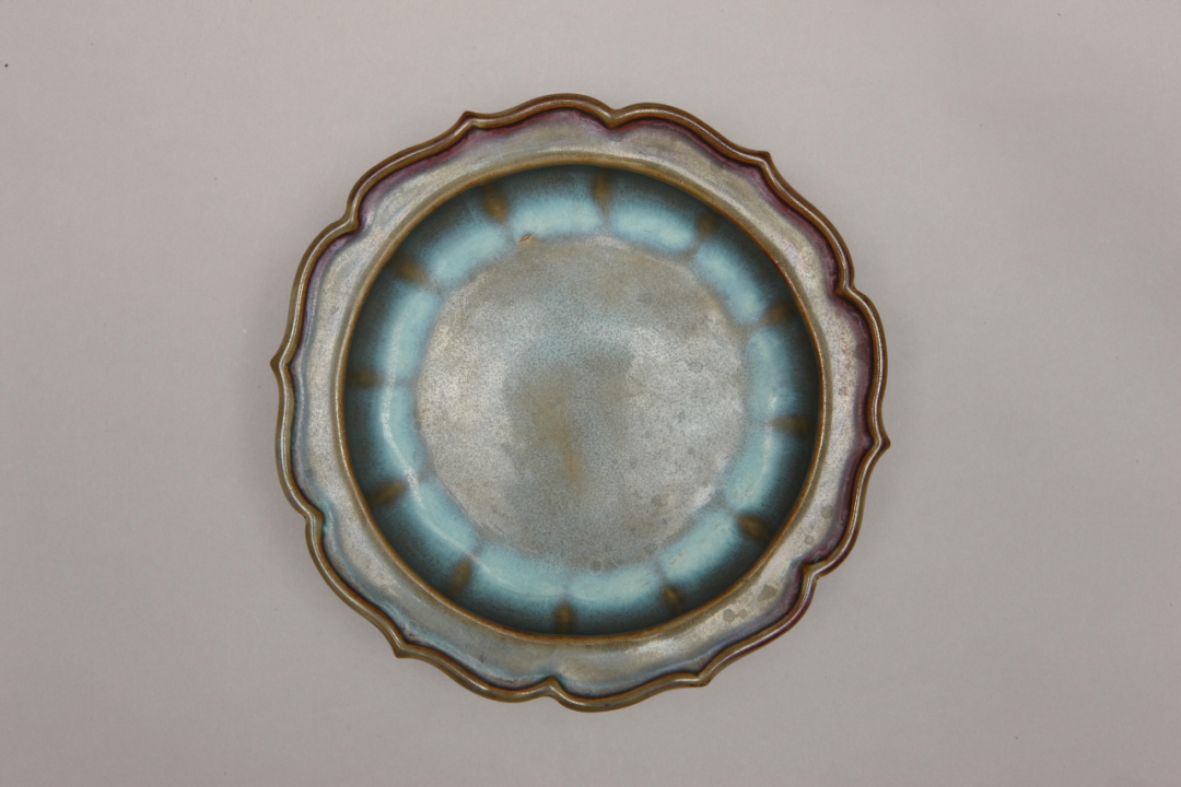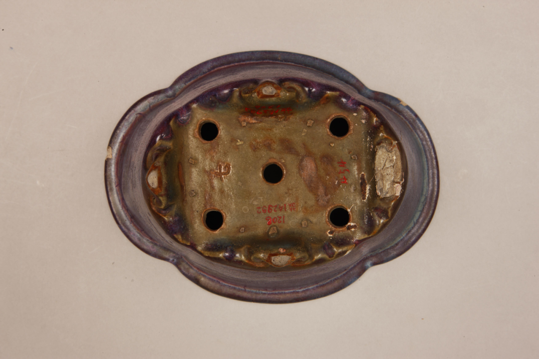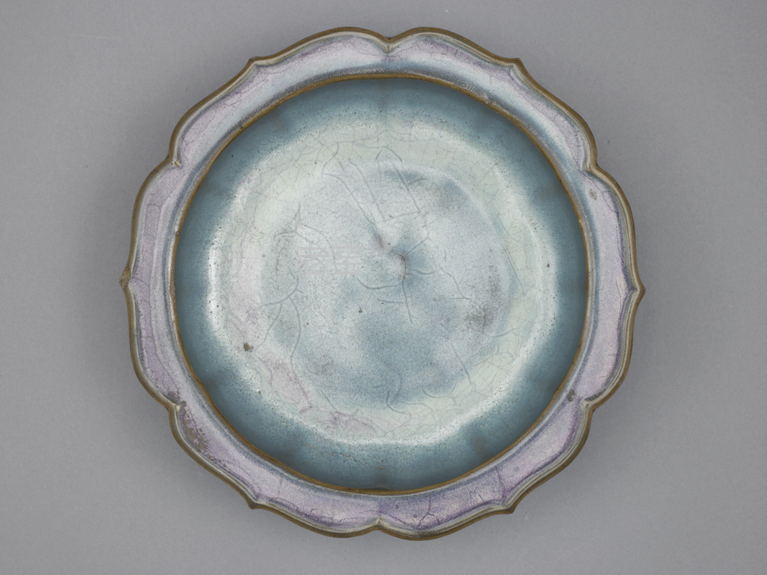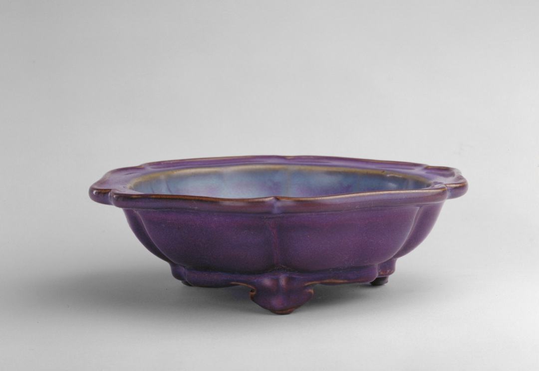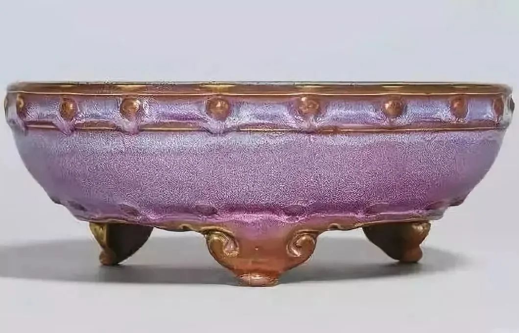 元/明 钧窑玫瑰紫葵式花盆 「三」字款
