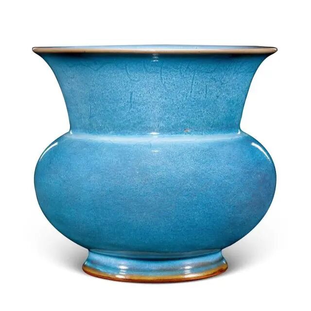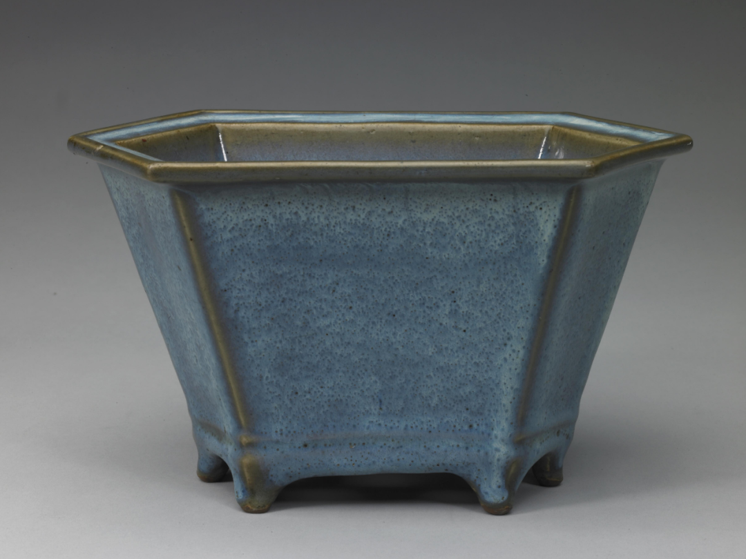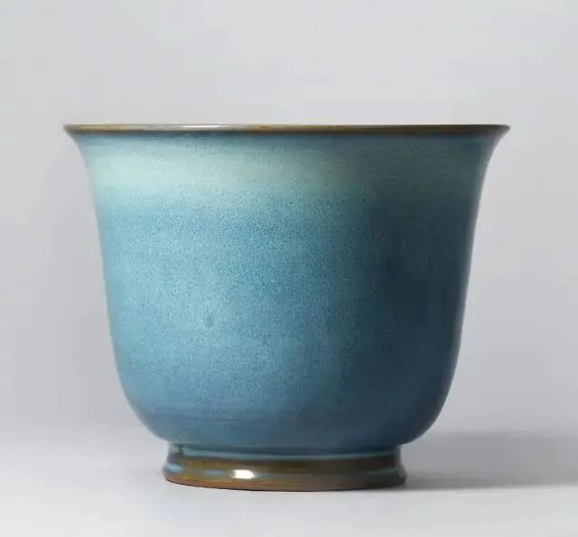 元/ 明初 钧窑天蓝「四」字仰钟式花盆