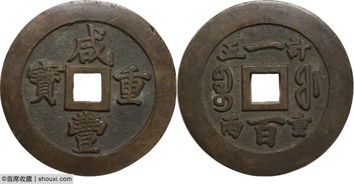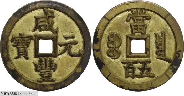 泰星2022年4月-钱币专场,清代咸丰宝福一百重宝内计重,铸造规整,字口高挺,包浆熟美,1.495亿日元成交,约合762万人民币,重宝内计重的各种面值均属罕见品,尤以“一百”大钱最为稀少,存世量仅为数枚,极为罕见。