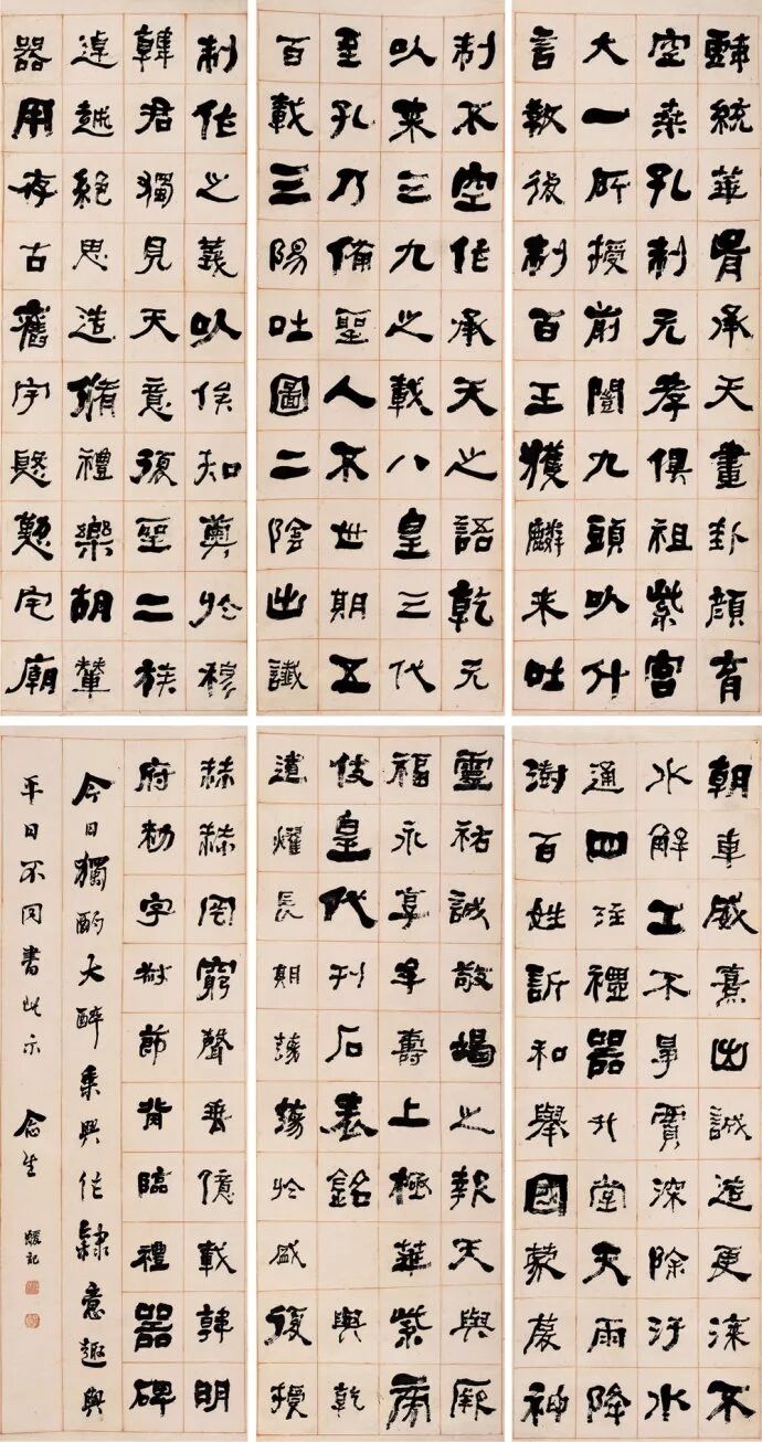 何绍基(1799-1873) 行书《山谷题跋》六屏
