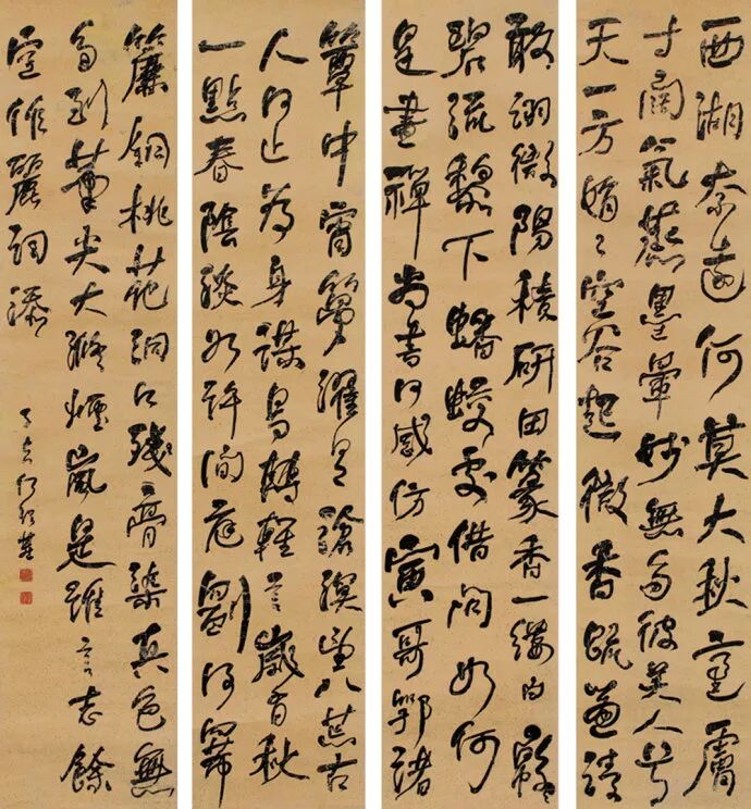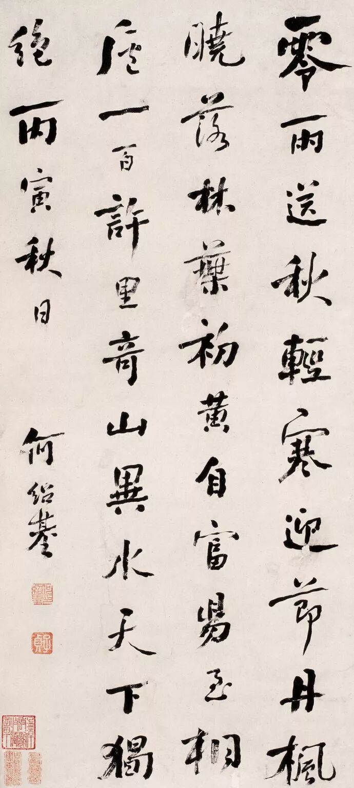 何绍基在清代270年的书法史中,似乎无人可以抗手。何绍基晚年在苏州,甚至都自己掏钱购买自己中年的作品,自叹自赏,以为不能及。算得上是痴人了。历史上还有一位痴人,也购买自己中年时期作品,那就是画《五马图》的李公麟。