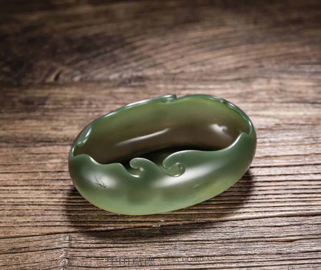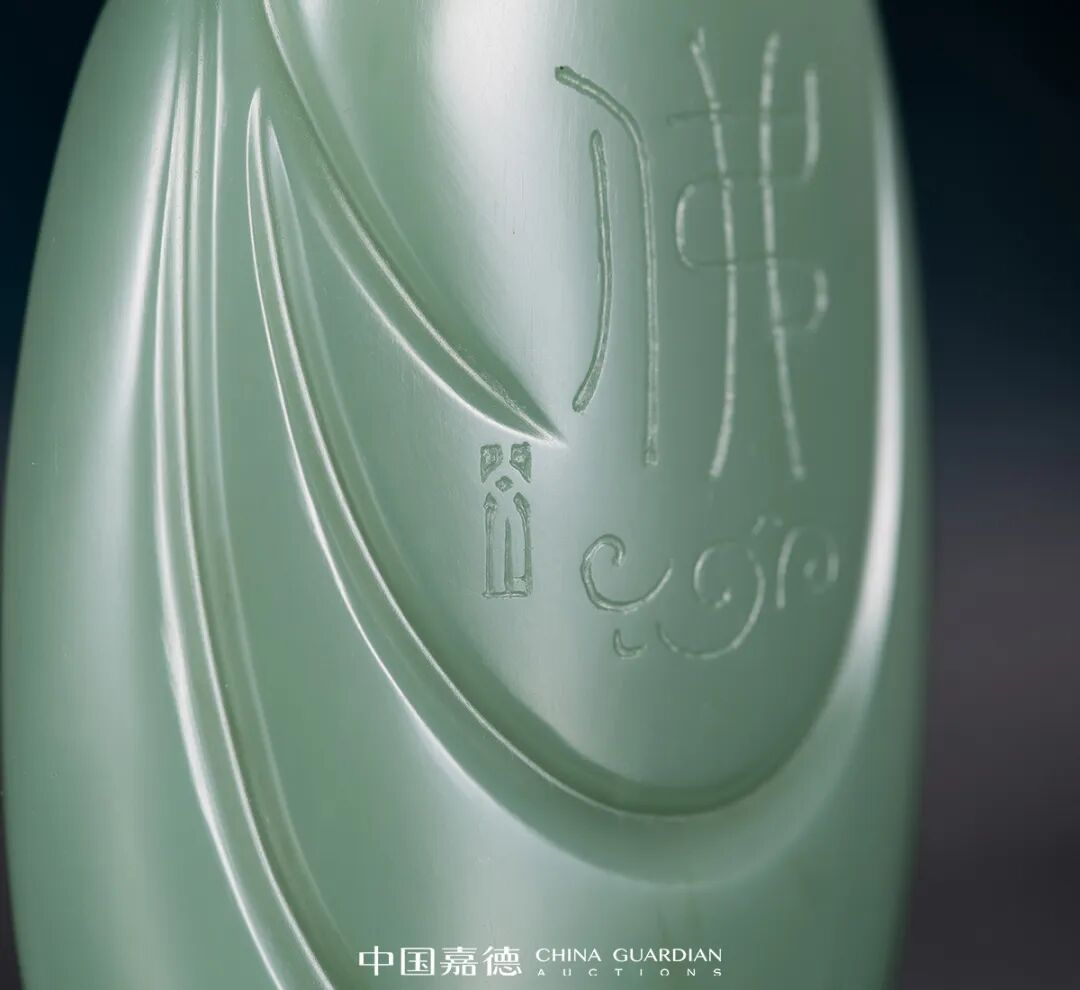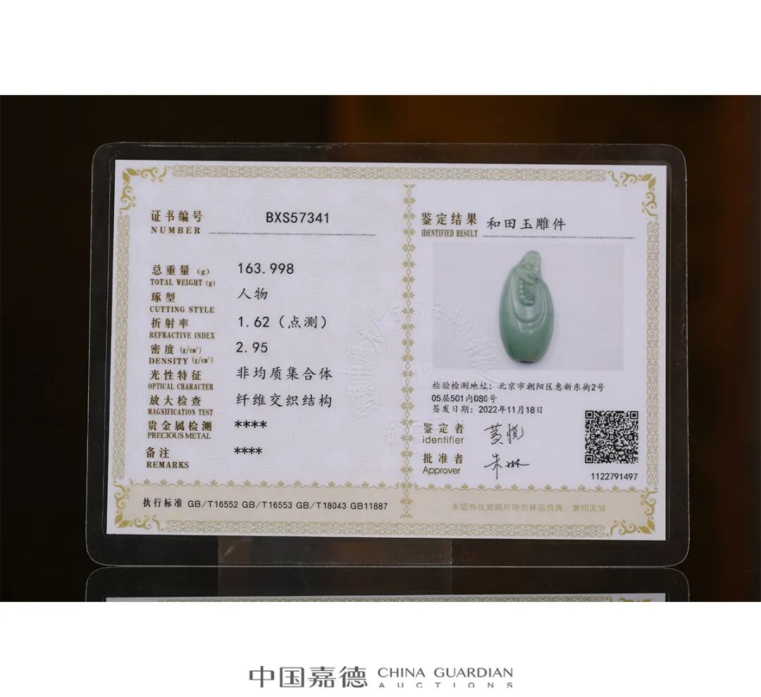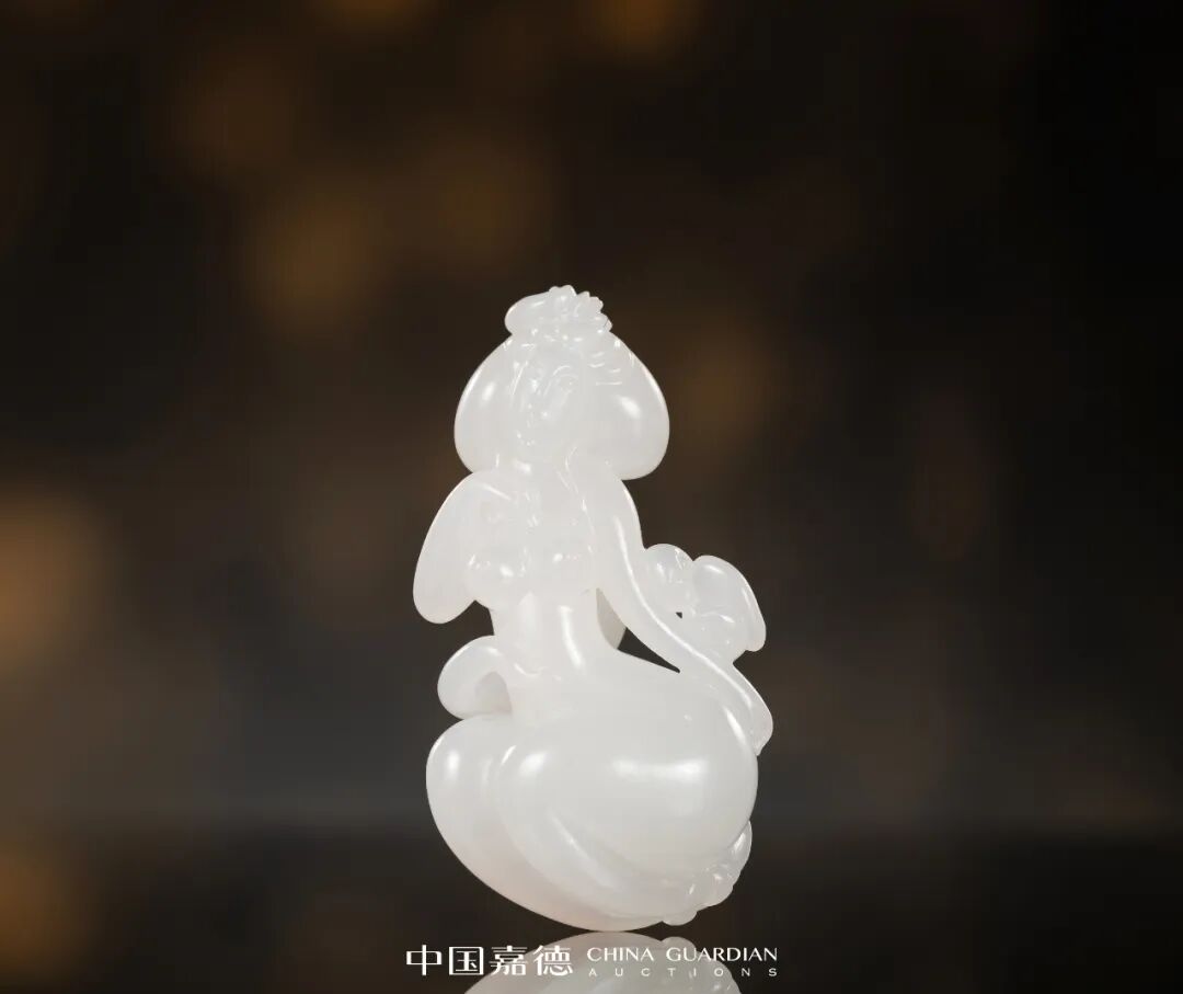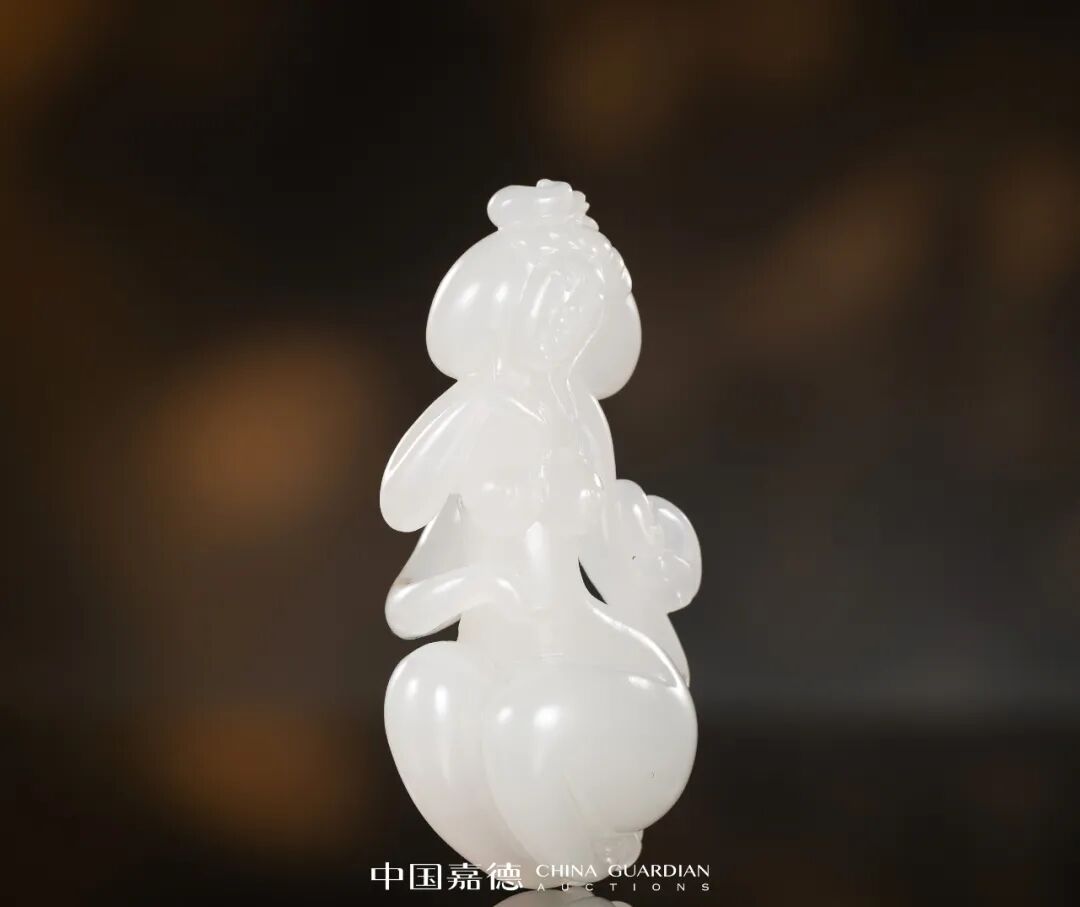 材质白细油润,以虚实结合的表现手法,刻画真龙吐水、行云布雨,正所谓“遇水则发”,画面生动威武,寓意吉祥。作者:林光,中国玉石雕刻大师,擅长于人物、动物、仿古和花鸟等作品的雕刻工艺。林光所作特点鲜明,能发挥工匠之学,玉石之美,将古之韵律与大自然的浑然天成合为一体,内涵至深,独具功夫。此件作品为碧玉所雕达摩摆件,玉质温润细腻,结构均匀,油润度佳,颜色为纯正的鸭蛋青。作者为中国玉石雕刻大师杨文双,极擅长人物形象刻画,尤以达摩形象最为传神,雕刻的达摩双目微闭,胸口带佛珠,佛珠颗颗圆润饱满,身披袈裟,祥云纹环绕达摩周身,达摩面部雕刻精细,毛发纤毫毕现,身体部分则用简单的线条刻画,留有大片的留白,整件作品简繁结合重点突出,实属佳品。此件作品为青玉所雕笔洗,玉质温润细腻,结构均匀,油润度佳。整件作品雕琢成池塘形状,侧身雕刻小鱼戏莲,活泼可爱,笔洗边缘雕刻为波浪形状,线条圆润平滑。底部落有款识:茹月峰。整件作品胎薄,器型饱满,圆润可爱,无论是使用还是观赏都十分适宜。茹月峰,中国玉石雕刻大师,高级工艺美术师,主攻雕刻薄胎器皿作品,在薄胎器皿的造型款式、纹理图案、刀法等难题的攻关上,颇多建树。大胆将国画的笔墨趣味通过对玉胎薄厚精准掌控的方式呈现在薄胎器皿上,形成独具个人风格的“水墨薄胎器皿”。达摩玛瑙勒子,为《幻象》系列作品之一。选材玛瑙,质地温润,以褐、白、深红撞色为主,层次分明干净,极似天眼,背面则带有墨绿色,分布如水墨晕染,色彩对比强烈,神秘玄妙,极具视觉冲击力!作者运用压低浮雕技法,精琢达摩面壁悟道,庄严非凡。人物形象刻画生动,意境深远,极富神韵。整体型制圆润饱满,十分适合收藏佩戴。可定制项坠款、手持款、108长链款。款识:石李文卓,中国玉石雕刻大师,北派玉雕新锐,擅长玛瑙类雕刻,其创意与俏色独具风格。“玉贵人”谐音“遇贵人”。裸女与罗汉是中国工艺美术大师吴德昇最著名的两种风格之作,极受藏家喜爱。吴德昇,中国工艺美术大师,中国玉石雕刻大师,1961年出生于上海。当代玉雕“罗汉三杰”之一,在玉器的工艺设计上有自身独创的理念,特别在传统的玉雕观念中,融合了西方雕塑的精华,力求摆脱平庸,追求新奇,作品给人以直觉的美;在创作思路上,人物变形略显夸张,使人感到中国传统艺术魅力就在于线条特有的审美价值和高度的形式美感,巧妙地把传统和现代风格结合在一起,形成自己独特的玉雕艺术风格。竞拍成交赠送《中国玉石雕刻大师系列丛书——“卓而大雅”吴德昇卷》