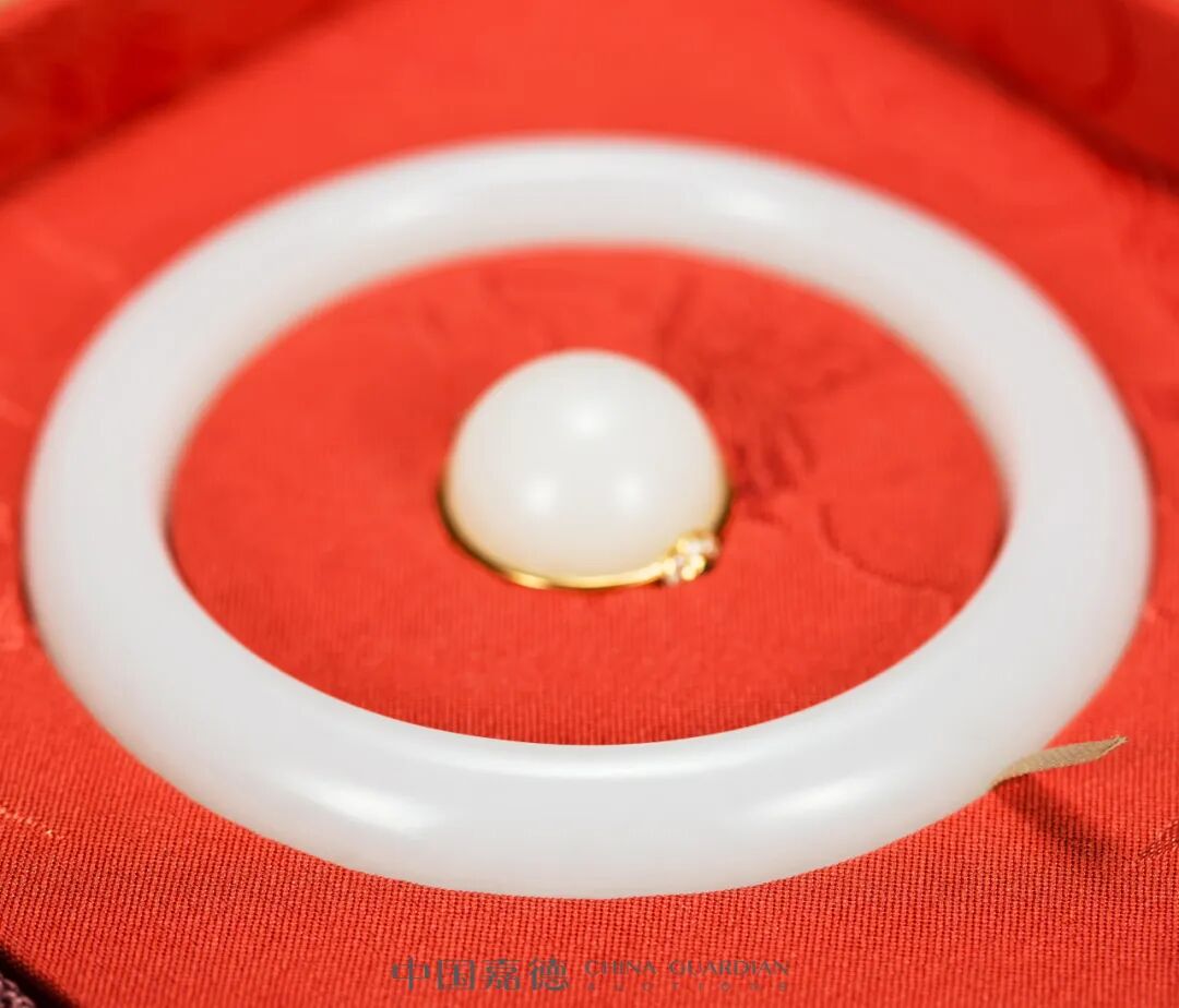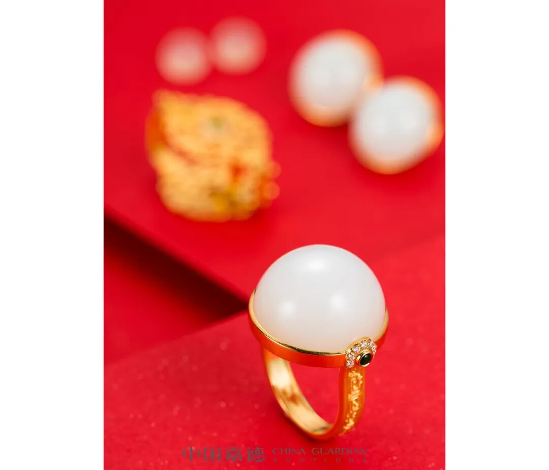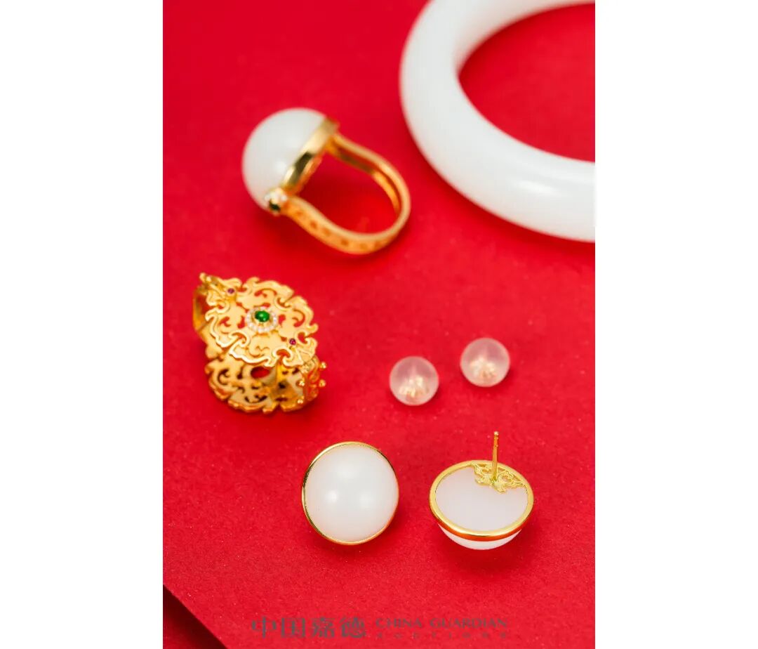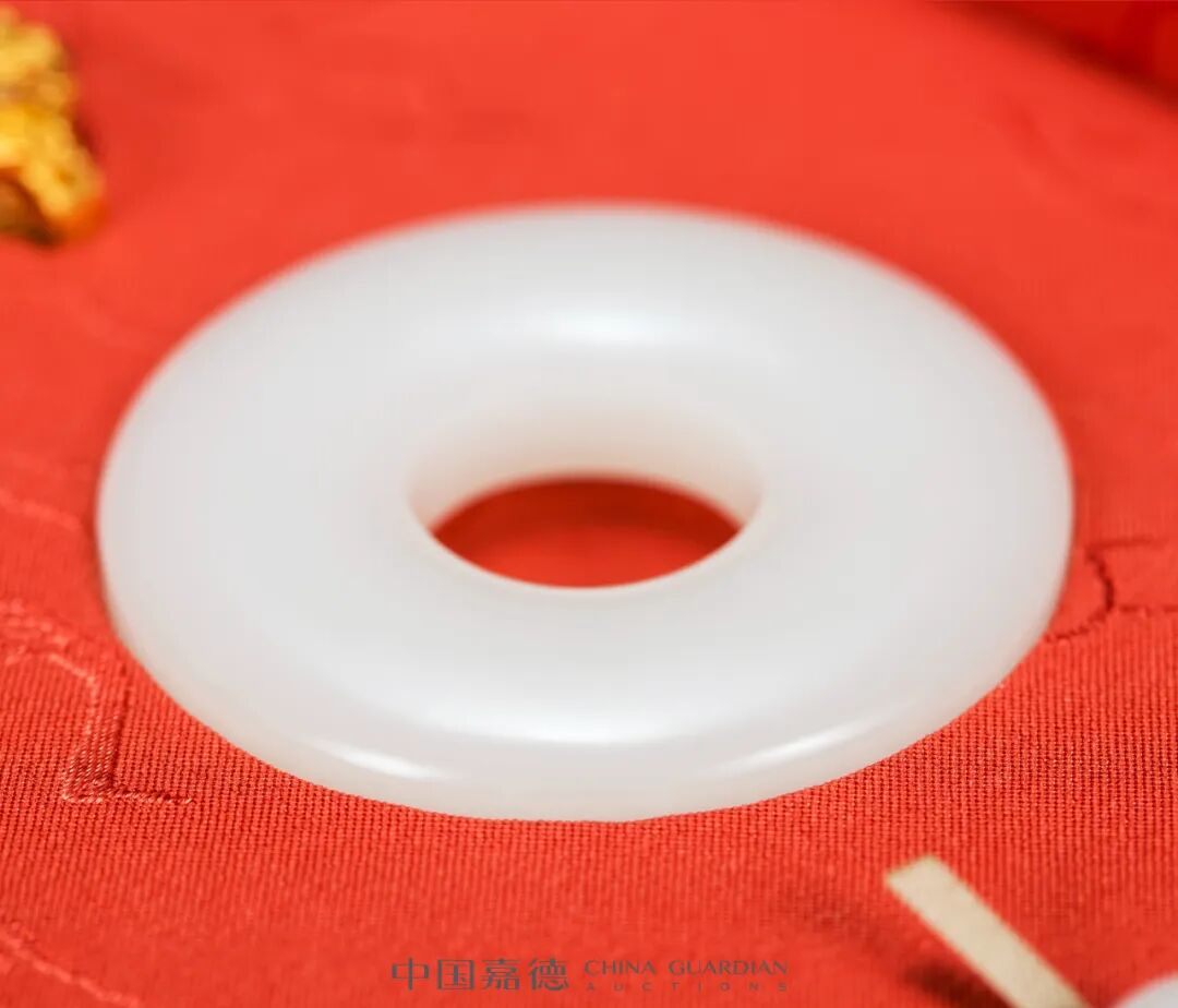 玉牌由优质白玉籽料雕琢而成,质地细腻油润,脂白无瑕,大片保留原皮,皮色淡金,局部聚红,色彩雅致。作者以皮俏色巧雕一只金色猛虎,玉肉处雕琢威武的神龙,写实与写意风格结合,虚实相生。背面设计为流云缝隙中露出的谷纹,谷纹是古代玉璧常用纹样,朴拙神秘,古雅大方。葛洪,中国玉石雕刻大师,苏州市市级非物质文化遗产项目“苏州玉雕”代表性传承人。早年求学于苏州工艺美术学校,1987年入苏州玉雕厂,2003年创建葛洪玉雕工作室。其作品以苏州小型山子及仿古件作品为长,尤善战汉风格,以情带意,出古入新,将艺术的匠心与美玉的天成融为一体,其作品内涵丰沛,清新自然,颇具文人画意,兼具园林之妙,盈寸天地,山朗水阔,别有气象。竞拍成交赠送《中国玉石雕刻大师系列丛书——“德承洪范”葛洪卷》当代 和田玉吉瑞首饰套组:手镯、平安扣挂件、戒指、耳环一对手镯内径:57 mm 72g 平安扣:5.5×5.5 cm 65g 耳钉:1.5×1.5 cm 7g;戒指:2 cm 内径17 mm 11g此套和田玉精工首饰,含手镯、平安扣挂件、戒指各一件,耳环一对。整套作品玉质温润细腻,洁白莹润无杂质。手镯为泥鳅背,圈口大小适中,线条平直,平安扣圆润饱满,配金扣一个与绳结一条可佩戴,戒面、耳环面圆润,适宜佩戴。整套作品风格统一,寓意吉祥,另附锦盒,十分适宜作为礼品相赠。