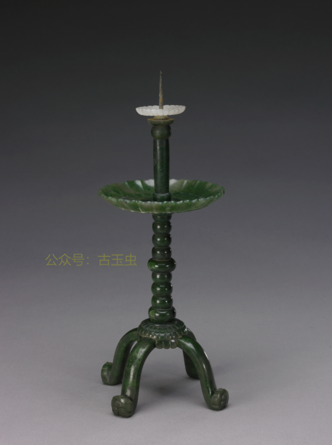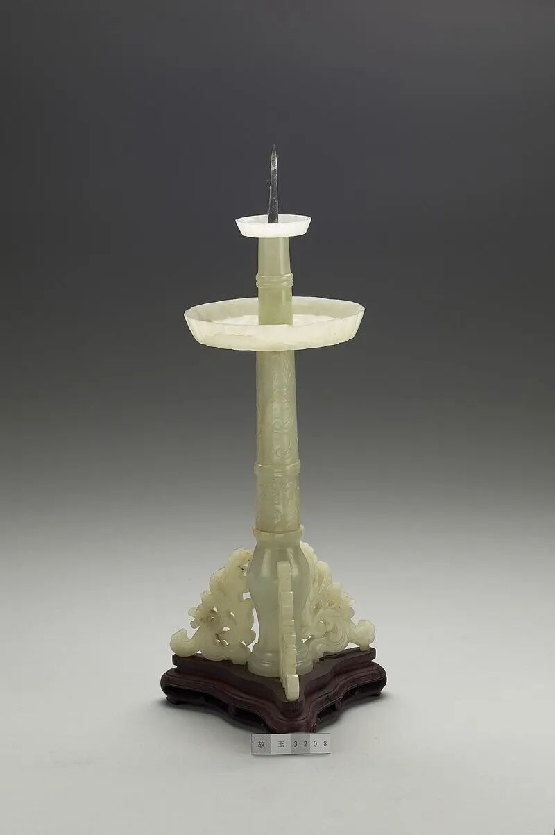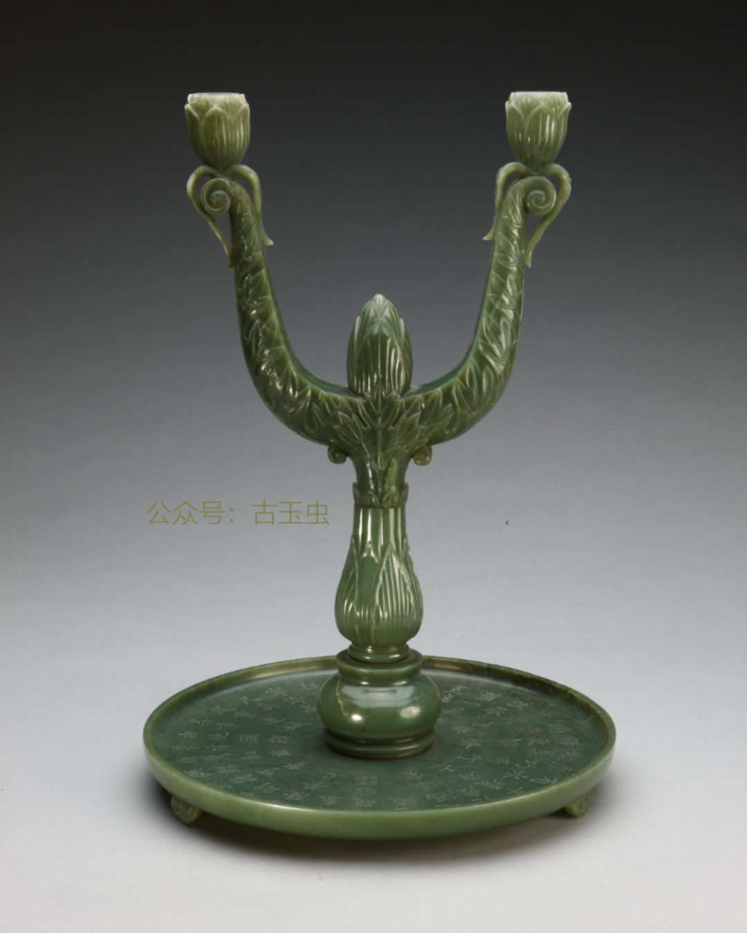 台北故宫博物院藏「玉烛长调」 青玉烛台局部烛台承盘刻款