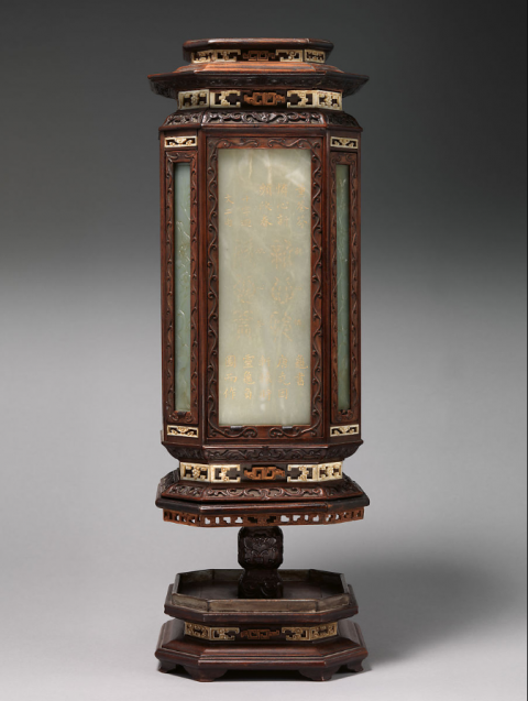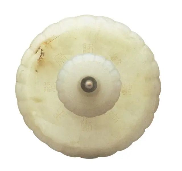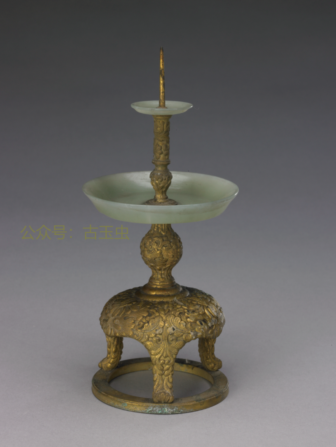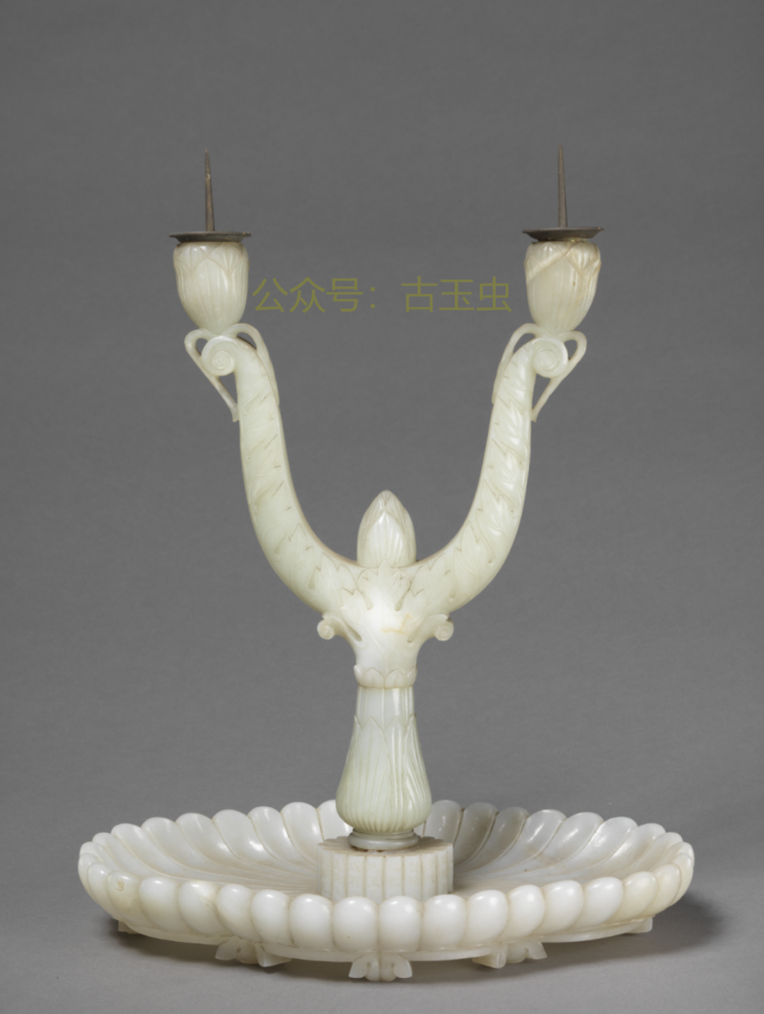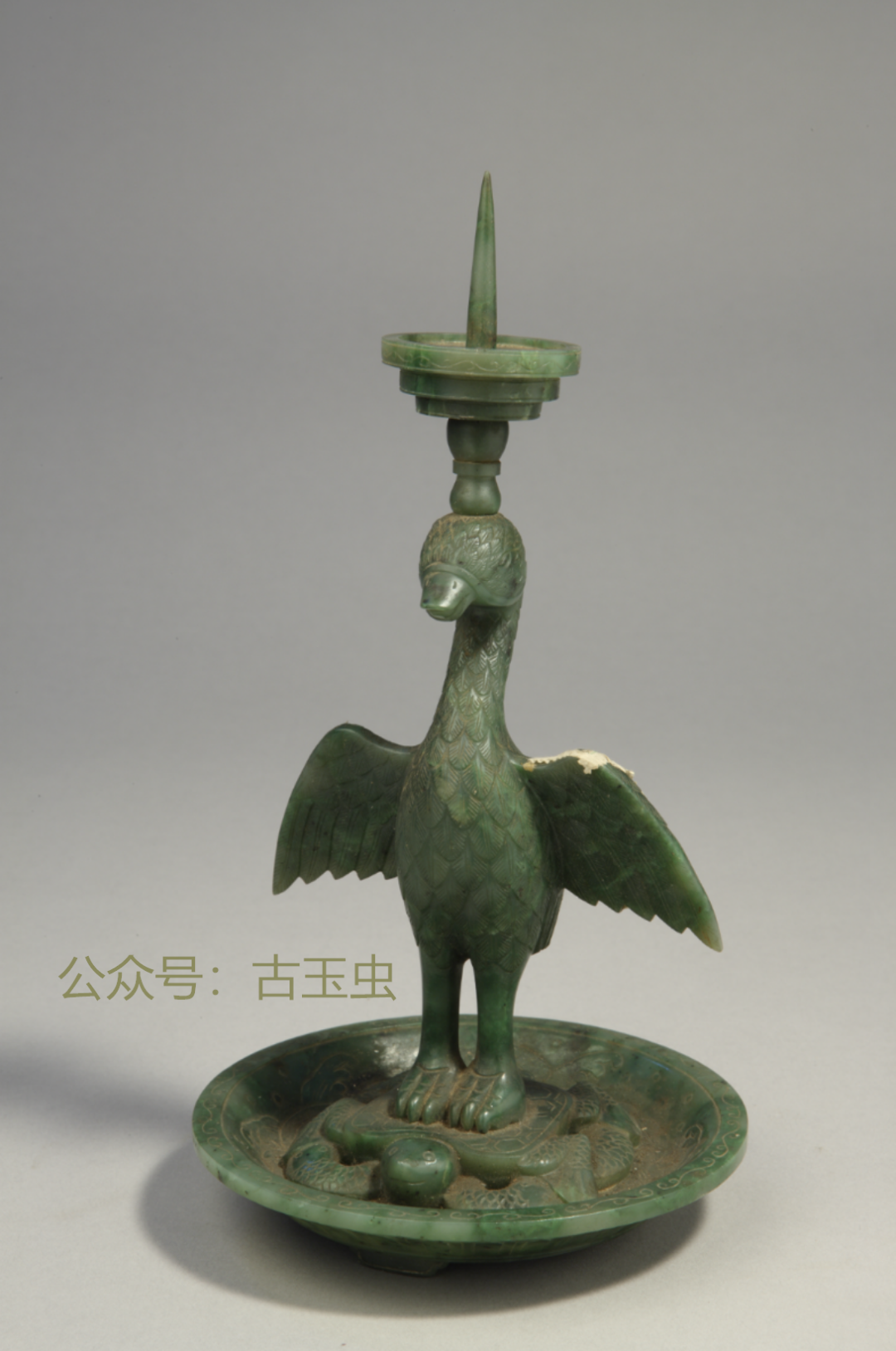 台北故宫博物院藏「玉烛长调」 青玉烛台局部烛台承盘刻款