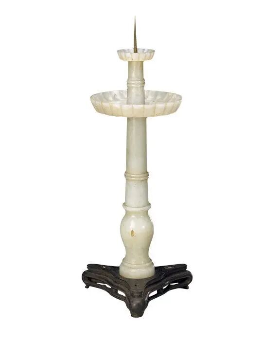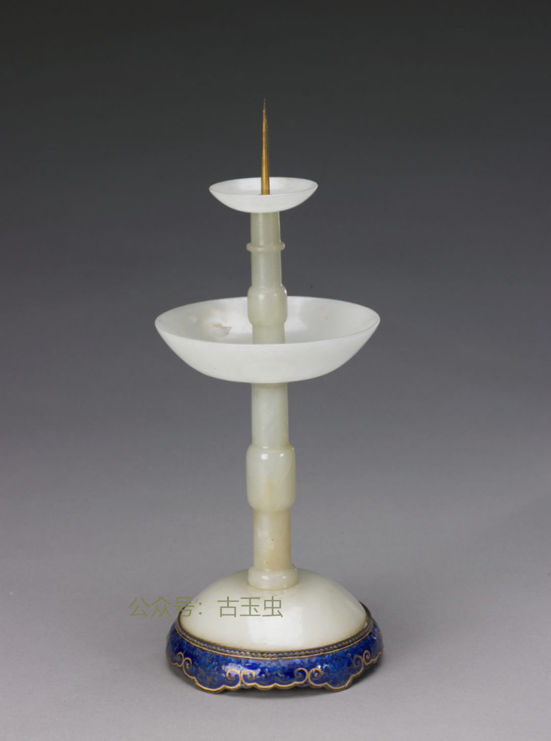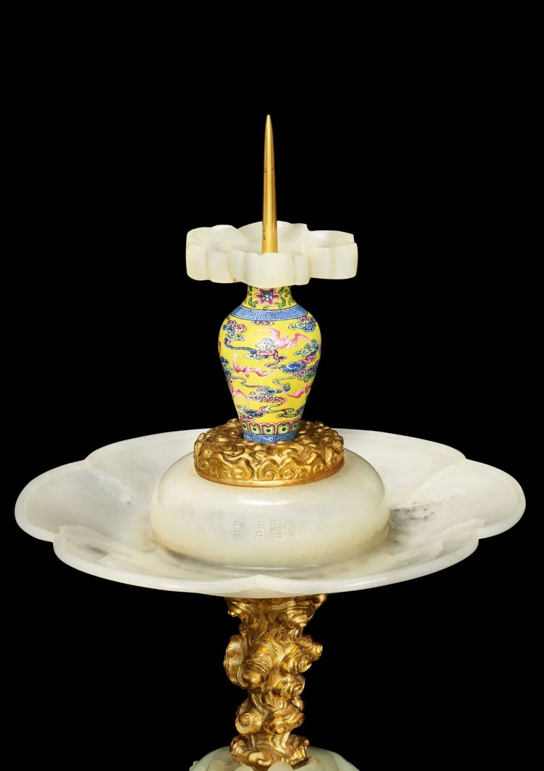 清乾隆 御制白玉嵌北京铜胎画珐琅烛台