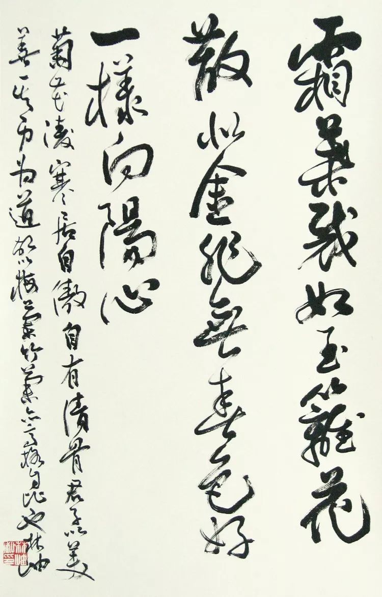 林岫书法不但飘逸自由,行若云霞,姿态比较美,还有一个特点就是特别有诗人的才华气质。林岫先生是书法家,也是当代著名女诗人,她把诗文才华融入书法笔墨,笔有诗韵,墨有诗情,很有内涵。所以看来看去,从内在到外表、从内容到表现、从气质到形制,林岫先生的书法都要甩来范曾数十年的差距。
