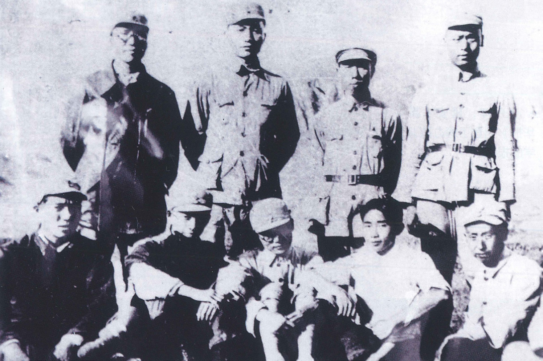 1938 年成仿吾(后排左三)和陕北公学领导合影。
