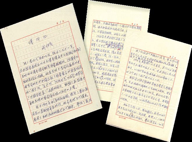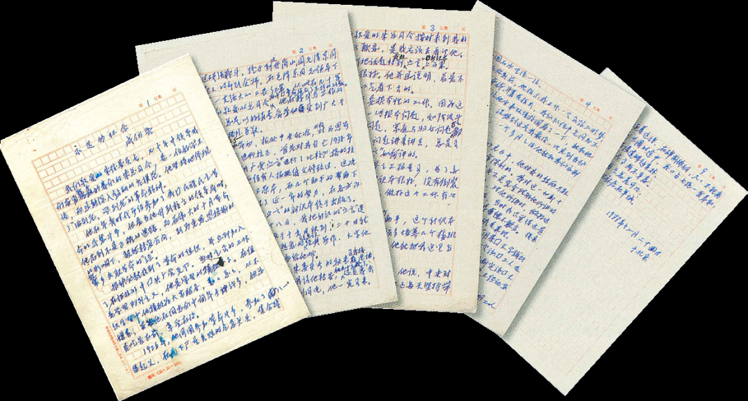 图为1976 年12 月,成仿吾深情回忆与朱德委员长最后一次见面的情景,撰写《永远的怀念》一文的手稿。