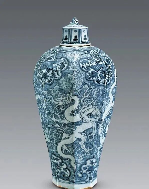 青花海水龙纹八棱带盖梅瓶元代▲