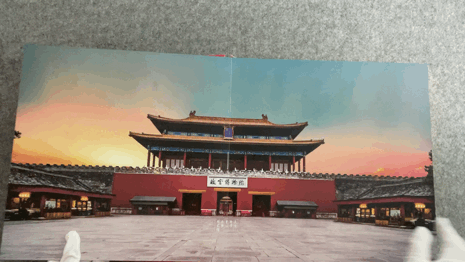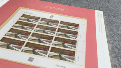 阎炳武先生对小型张图案上的屋顶、廊柱反复进行了考证,将72万平方米巍峨壮丽的紫禁城浓缩其中,把故宫建筑群的恢弘之美展现得淋漓尽致。