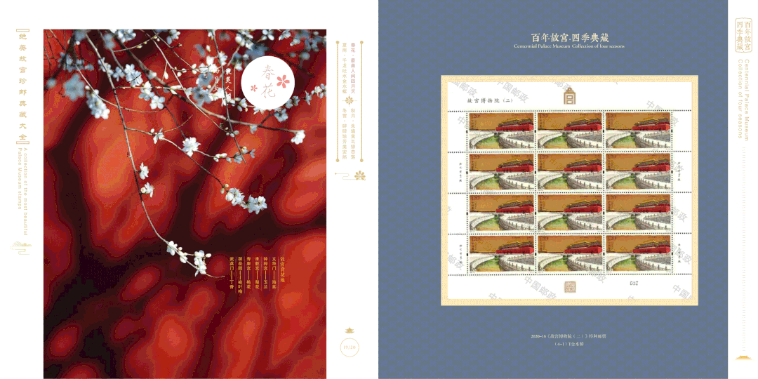 《百年故宫四季典藏》以上、下卷的方式,将故宫的百年建筑、四季美景,甚至可爱生灵凝结于邮票的方寸之间。