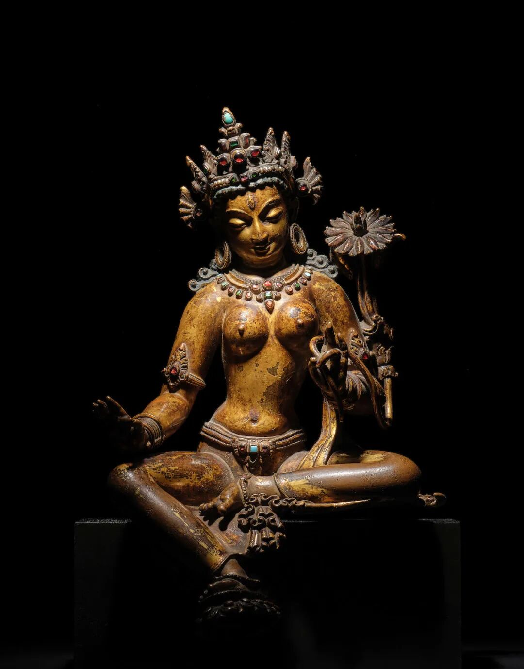 尼泊尔 马拉王朝早期 十三世纪 铜鎏金绿度母像