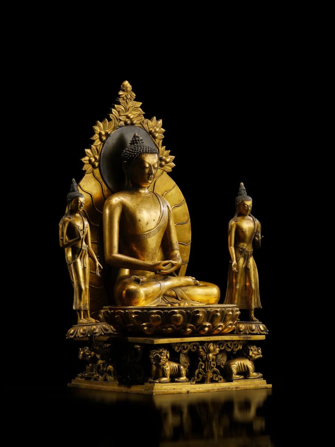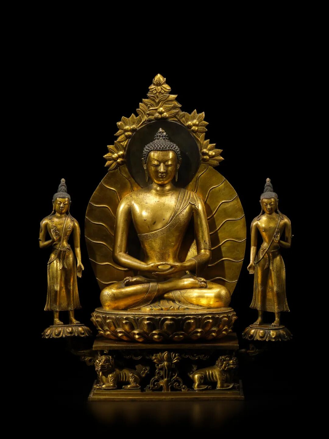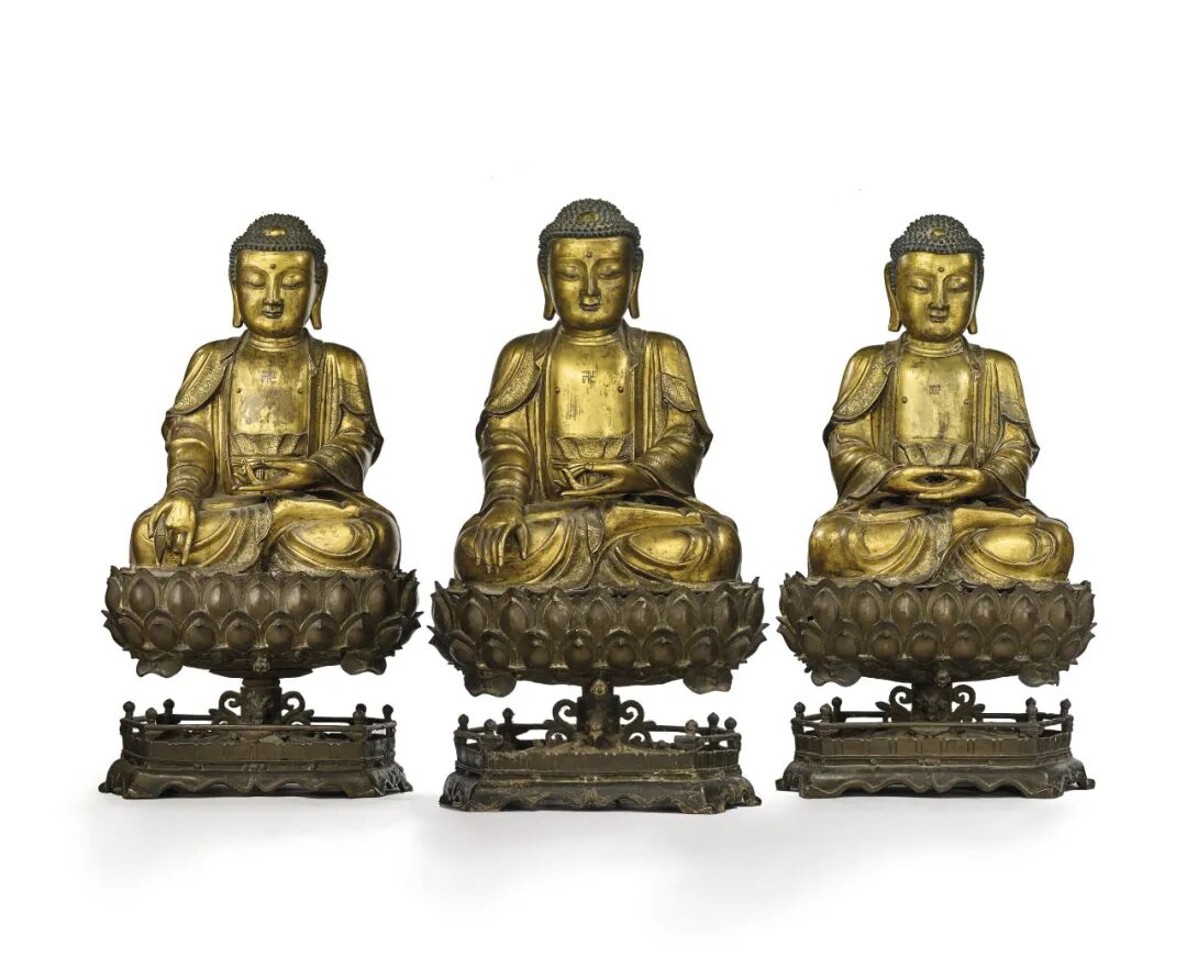 明十六/十七世纪 铜鎏金药师佛、释迦摩尼佛及阿弥陀佛三尊