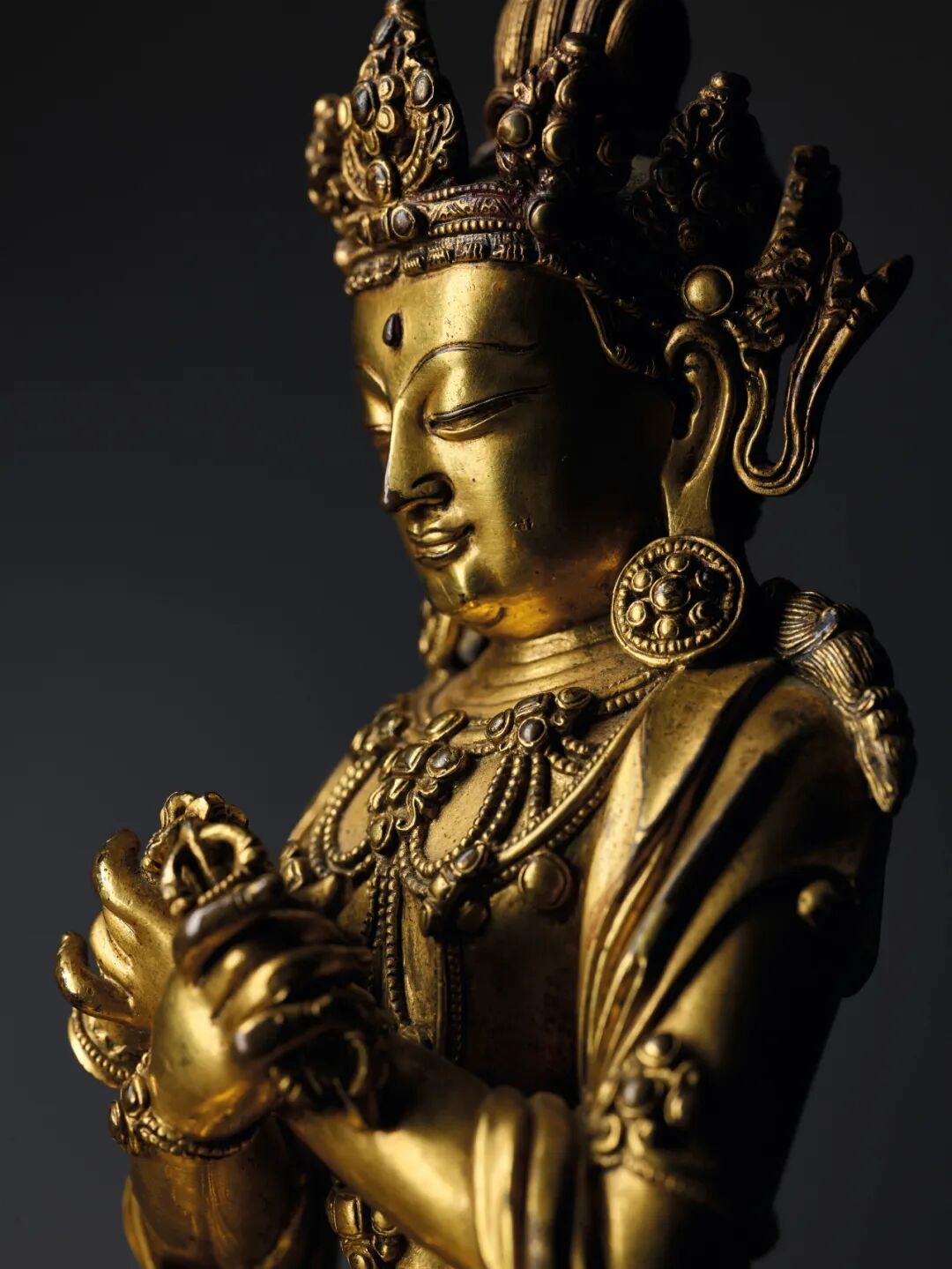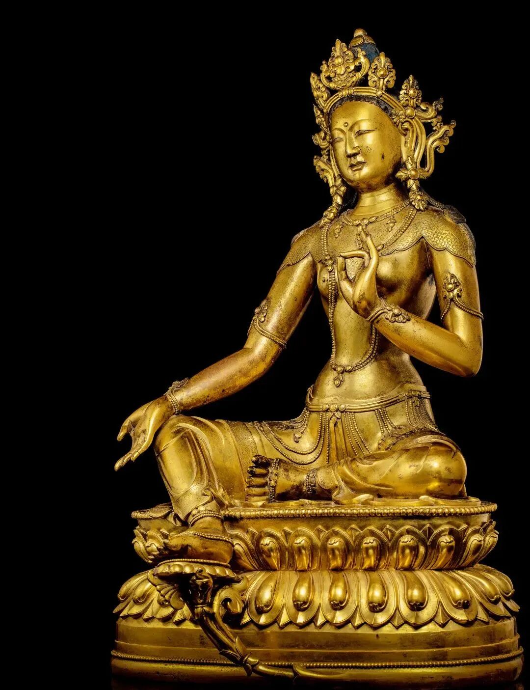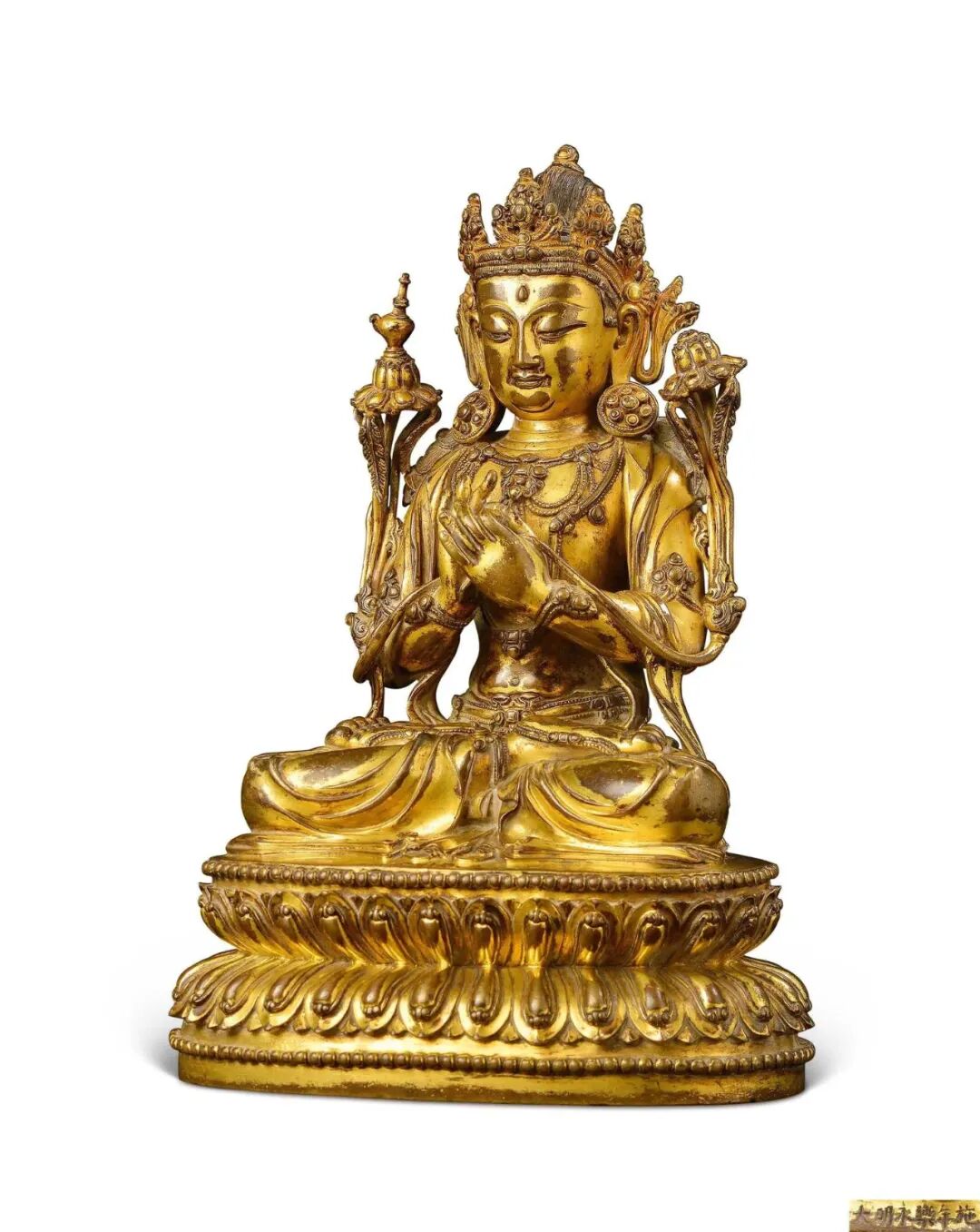 摘得2022年造像成交之冠的是香港苏富比秋拍「何鸿卿爵士私人珍藏第一部分·晚间拍卖」的一尊十一至十二世纪 大理国鎏金铜阿嵯耶观世音菩萨半跏像。目前所知阿嵯耶大多为菩萨立像,坐像极罕。此观音像先后经由旅日华人收藏家彭楷栋、古董教父安思远和何鸿卿爵士递藏,并且曾在1987年出展于台北故宫博物院,又收录于多本重要著录,可谓来源显赫,最终以逾三倍估价的4877.5万港元成交。