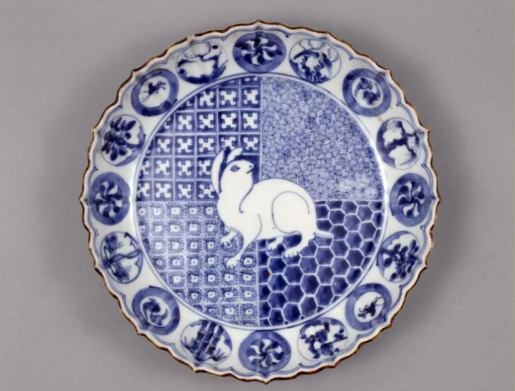 明 天启仿成化款青花兔纹花口盘 故宫博物院藏