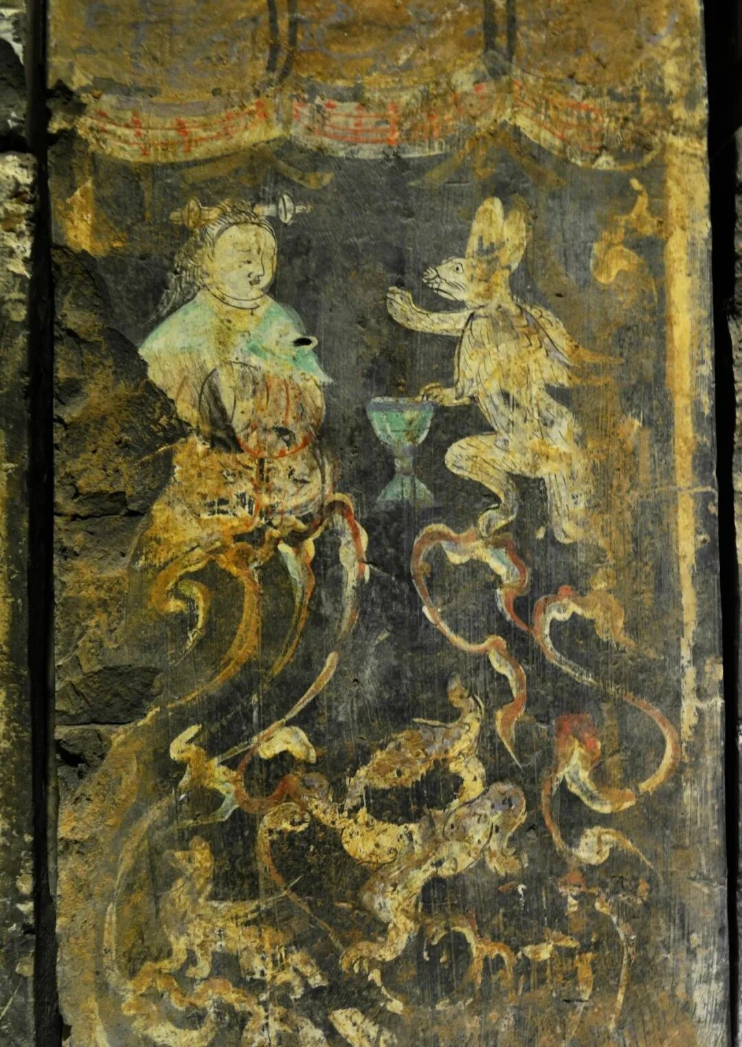 洛阳古墓博物馆 汉代画像石上的西王母与玉兔