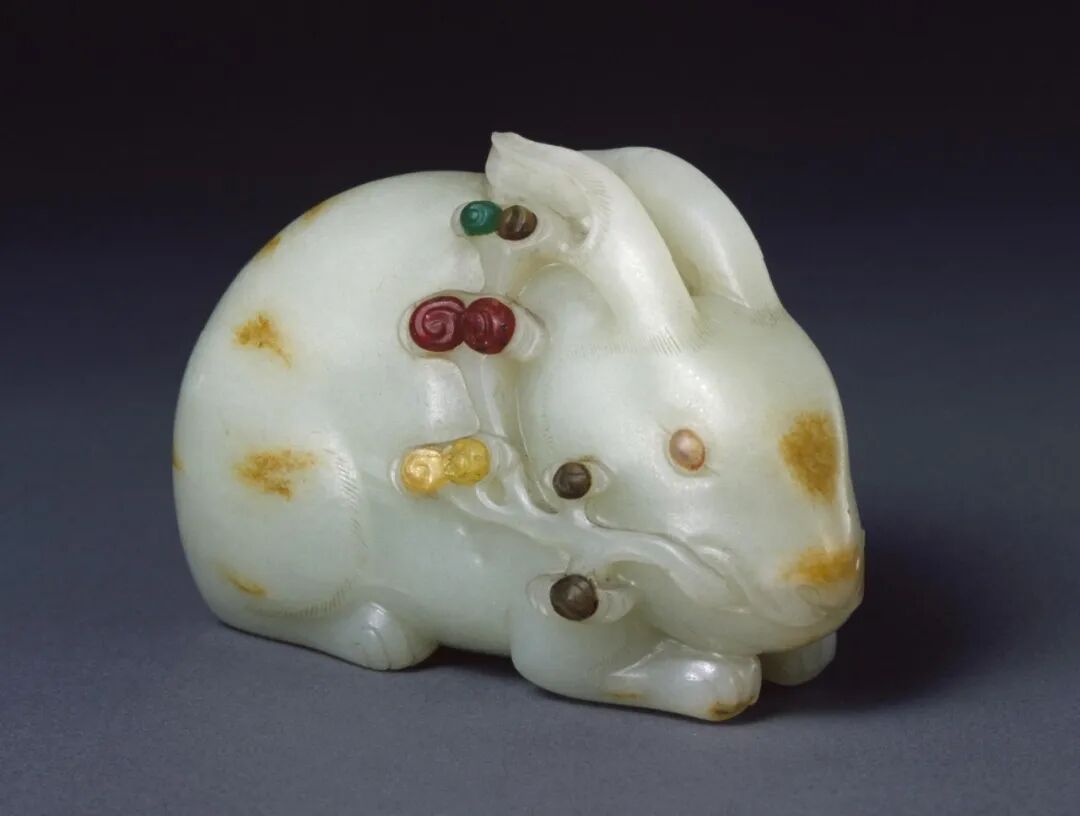 清 青玉嵌宝石卧兔 故宫博物院藏