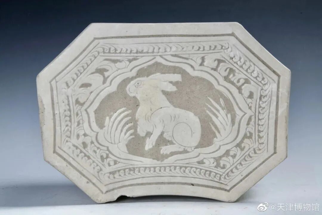 北宋 磁州窑白釉剔花兔纹八方枕 天津博物馆藏