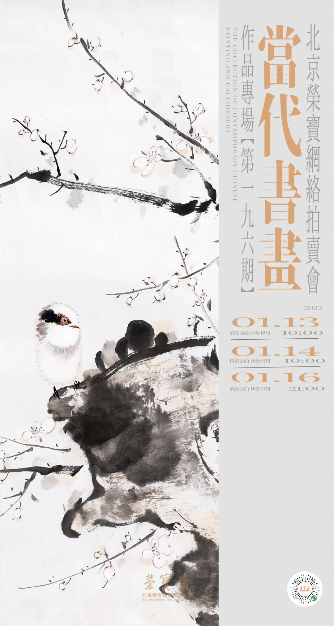 北京荣宝·当代书画作品专场网络拍卖会(第一九六期)将于1月13日10:00—1月14日10:00开启线上预展,并于1月14日10:00开拍,1月16日21:00结拍。