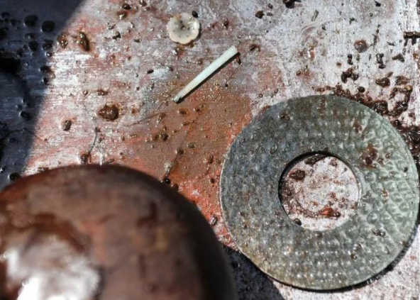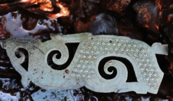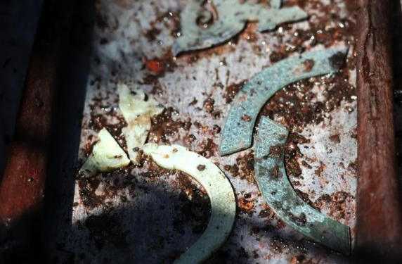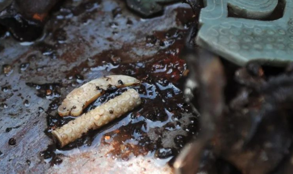 在六安战国墓北墓内棺里发现的陪葬品玉管和觿