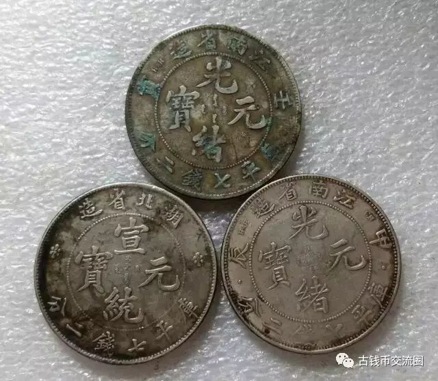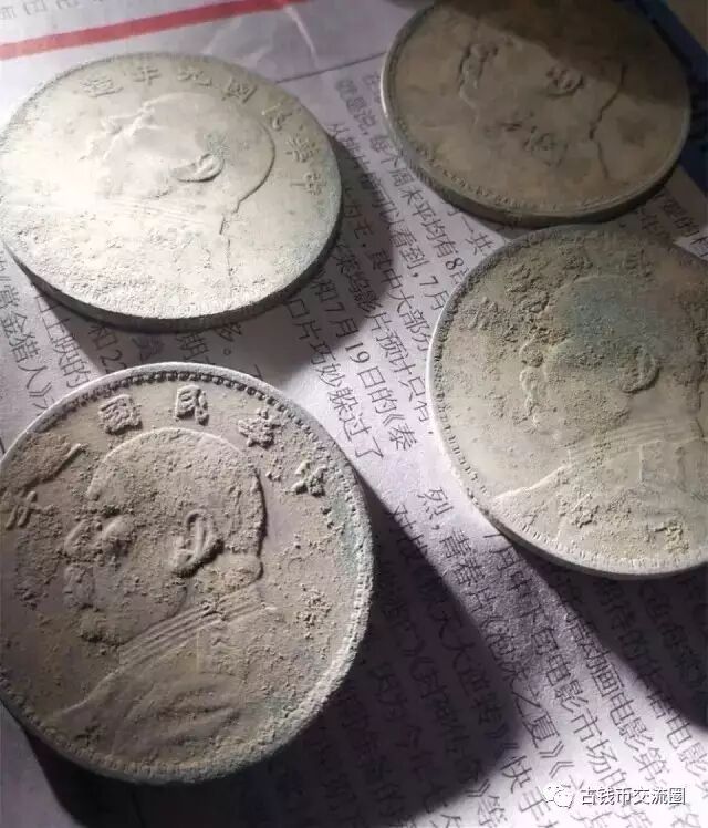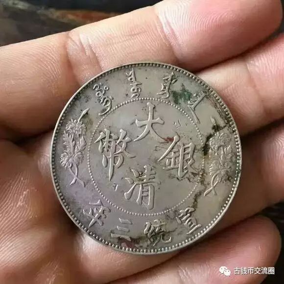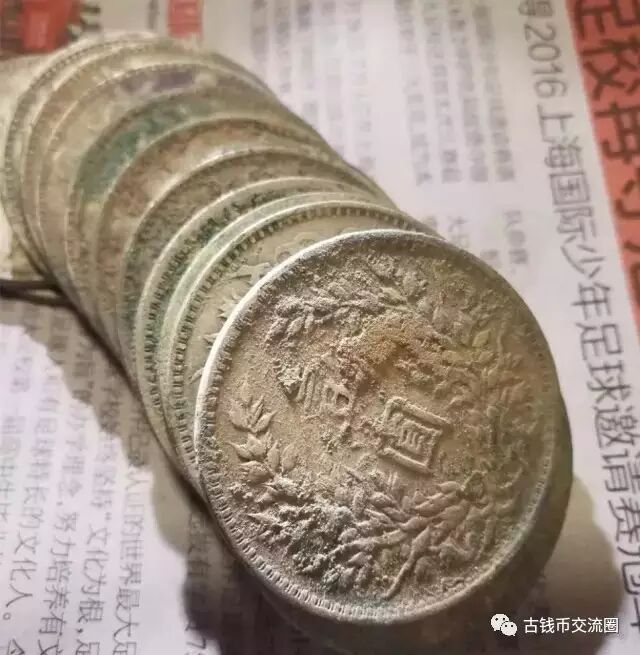 多说一句,随着时间的流逝,硫化银的生成,银元最后都会发黑。这类银元经过近百年的埋藏,由于保存环境的不一样,包浆表现也是不同。例如,被长期埋藏于南方所表现出的包浆较硬,由于这些年基建工程较多,这类窖藏银元也时有发现。又例如,保存在西北、东北一带的生坑多是薄锈。由于这类银元流通较少,底板大多磨损较小,只要锈蚀不是很大,处理得当的话,品相都不错。
