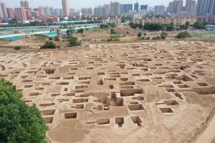 北城村墓葬群位于空港新城城北杜街道北城村,距离咸阳国际机场4.5公里。2021年至今,考古工作者对位于空港新城城北杜街道的北城村墓葬群进行了考古发掘,共清理十六国北朝至唐代墓葬217座,围沟1处。考古表明,该墓群具有完整围沟、围沟内墓葬分布有序、排列整齐,有着明显的规划布局,应是一座大型独立墓园。