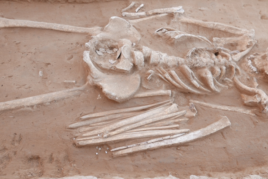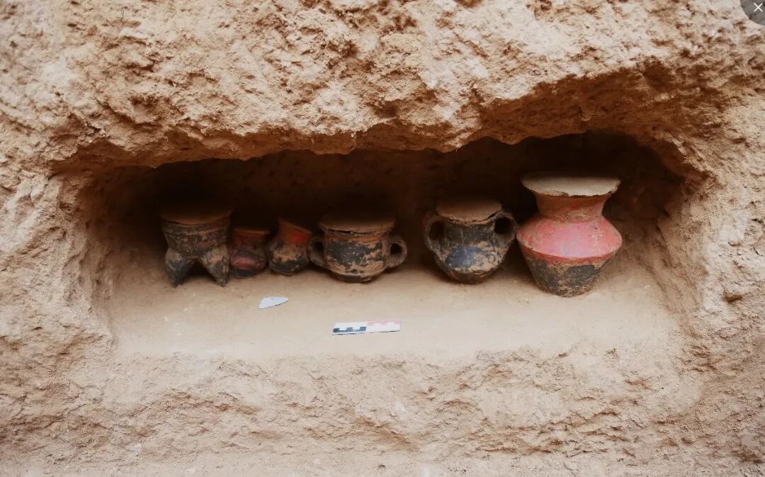在东环壕北部中央发现有朱砂墓、夯土基址和大型地坑院建筑等。同时在遗址里面发现了当时人类生活使用的陶器、石器、骨器,通过植物考古学的浮选,还发现了当时人们生活所必须的这些粮食,包括有黍水稻等等,这都是为展示当时人类生活的一个全方位的场景。特别是小麦的发现为了解小麦东传路线提供了明确的证据。