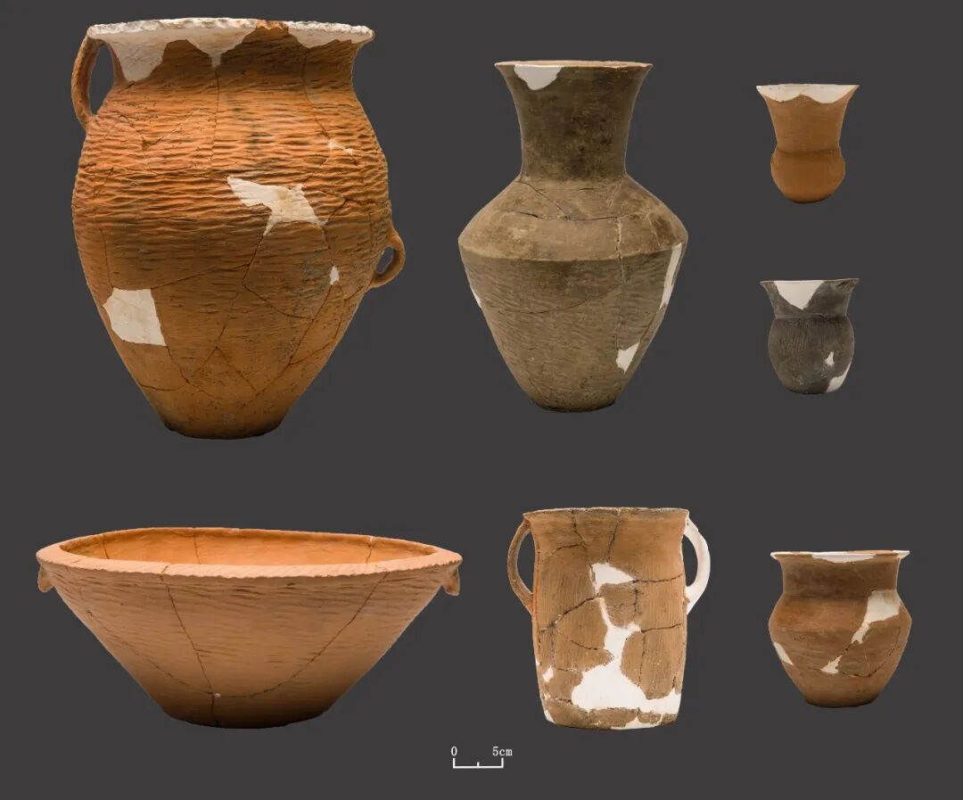 此次发现应为环壕西南段,系人工挖掘而成,形制规整。环壕内堆积以黄褐色、灰黑色淤土为主,陶片较少,器型常见仰韶晚期典型的尖底瓶、敛口钵、夹砂罐等。