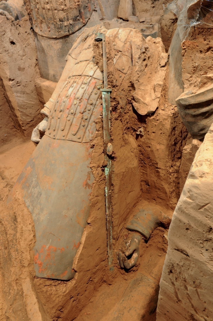 陶俑制法上的新突破,认为俑的双臂单独制作,待陶俑躯干完全作好并且二次覆细泥,细部雕饰包括铠甲已完成后才粘接双臂,搞清楚了陶俑的制作程序。