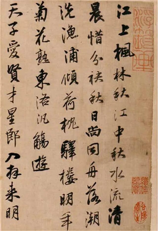 江上枫林秋,江中秋水流。清晨惜分袂,秋日尚同舟。