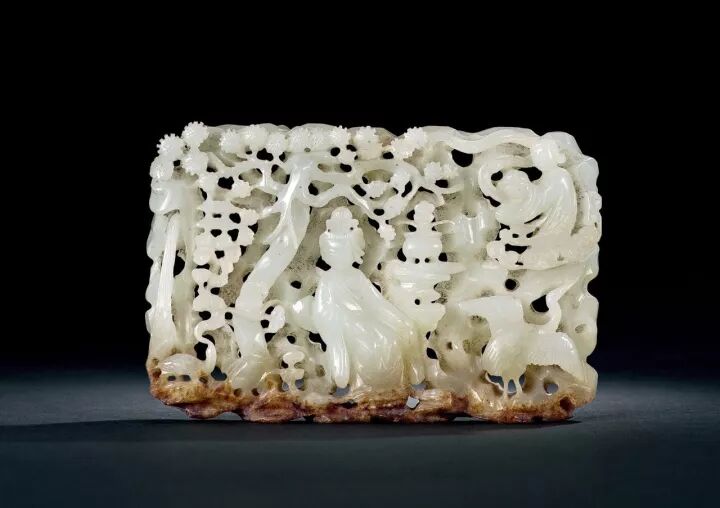清代是我国古代玉器史上的又一个高峰。康熙时开通了缅甸翡翠进入中原的路线,乾隆时又打通了和田玉内运的通路,使和田玉大量运进内地,促进了玉器工艺迅速发展。清代玉器的品种和数量很多,以陈设品和佩饰最多,也最为精美。陈设品有仿青铜器的仿古器皿,还有各种寓意吉祥的动物造型。新增的品种有山水、花鸟、玉山子、浮雕图画式的玉屏风等。玉佩饰的种类更是非常的丰富。此外还有各种玉质的实用器皿、文房用品。清代玉器善于借鉴绘画、雕刻、工艺美术的成就,集阴线、阳线、镂空、俏色等多种传统做工及历代的艺术风格之大成,创造与发展了工艺性、装饰性极强的玉器工艺,有着鲜明的时代特点和较高的艺术造诣。清代玉器中有不少大型的观赏性“玉山”,以山水画为蓝本,就地取材,加以设计制作。其做工严谨,一丝不苟。作为我国封建社会的最后一个王朝,玉器在清朝时期得到了空前发展,并形成了不同风格和技术特色的“南玉”,“北玉”制玉中心。