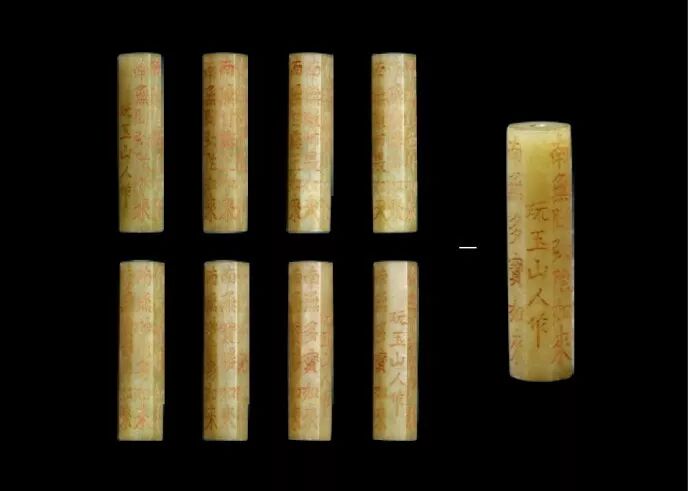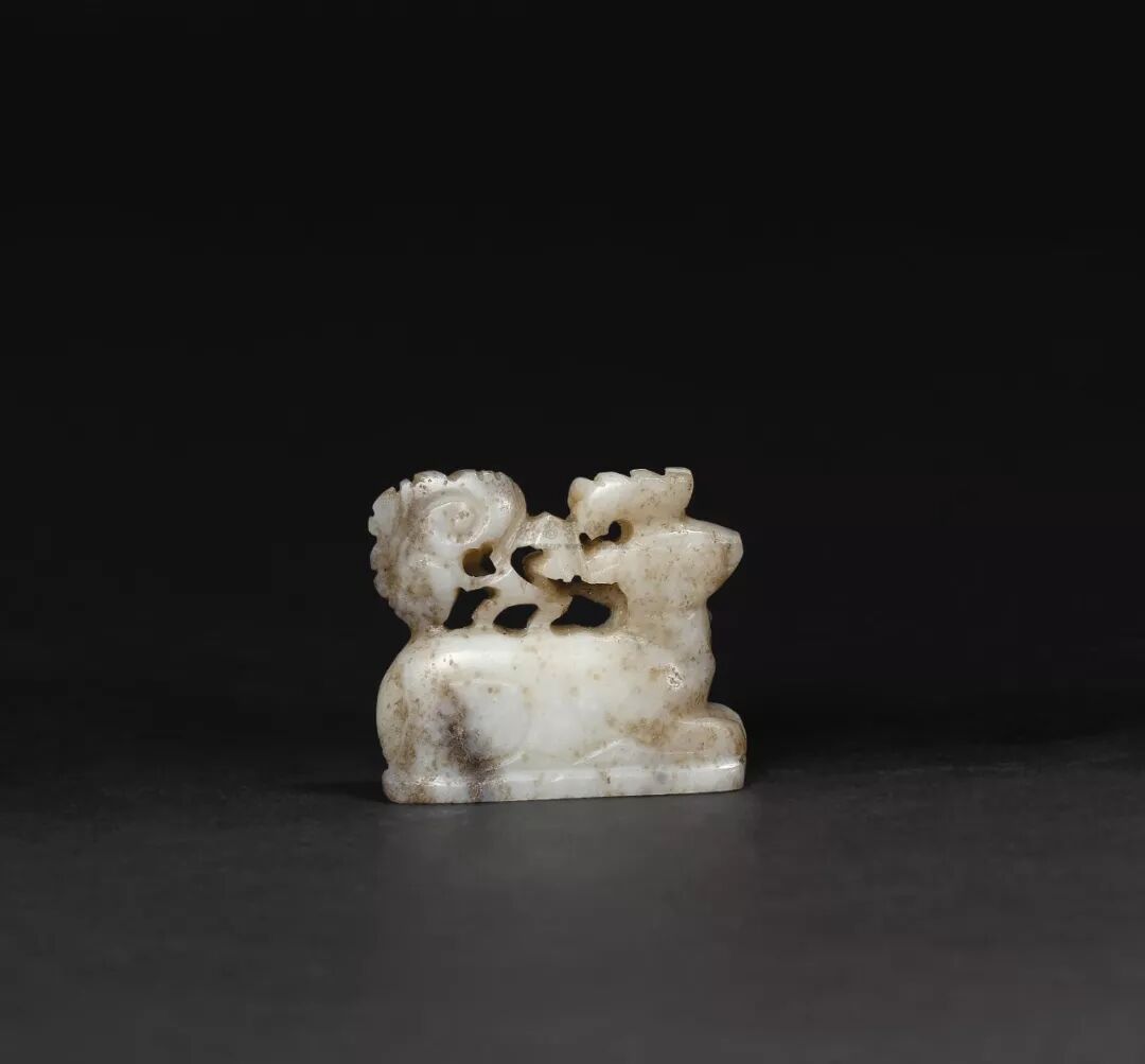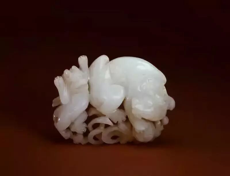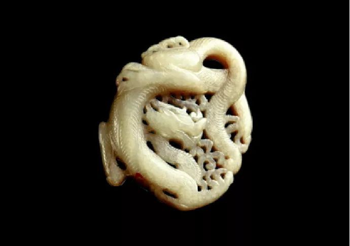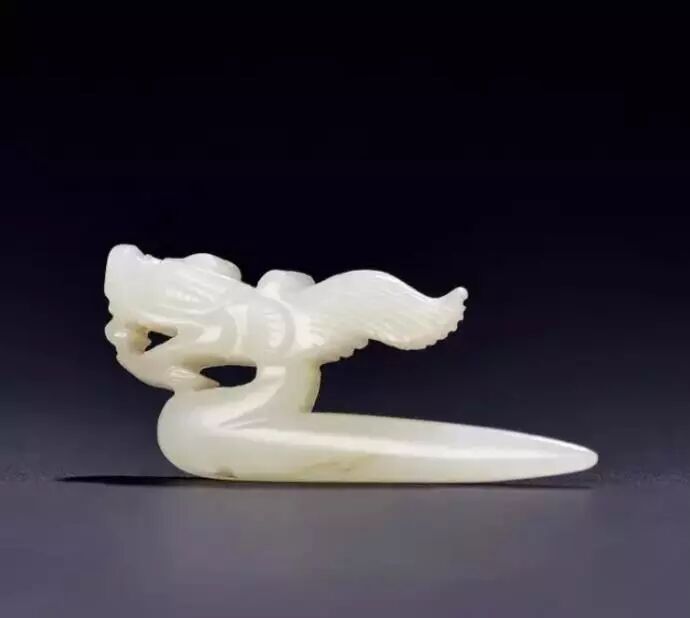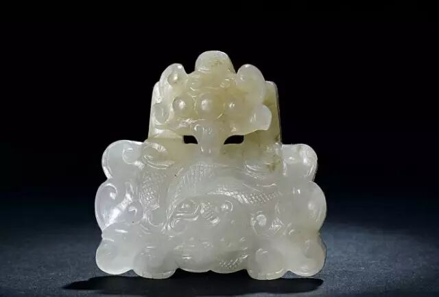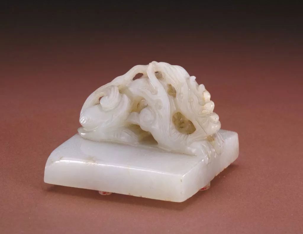 元白玉龙纽押明朝玉器承传了元代的镂空工艺,出现双层透雕,形成花下有花,枝下有枝的艺术效果,也出现了有图必有意,有意必吉祥的主题纹饰,吉祥文字“福、禄、寿”等纹饰众多。镶嵌工艺也达到一个高峰,出现了大量的玉镶金、玉镶银。明中期受名人画风影响,装饰玉上往往用名人画稿、诗句做主题纹饰,文房四宝实用器皿增多。明人以复古为尚,常常出现以复古为主题的玉器,其中以玉为上古青铜器造型的器物,更是多见。这种以青铜器为造型的玉器,一般用作明代书房的陈设,没有实际的盛放功用,多只用作欣赏,或作为花插。不过明人在玉器模仿上古青铜器的时候,并不能完全恪守青铜器的形制,常常只是取其意形,纹饰和造型上经不起细致推敲,可见当时古人一颗复古之心。