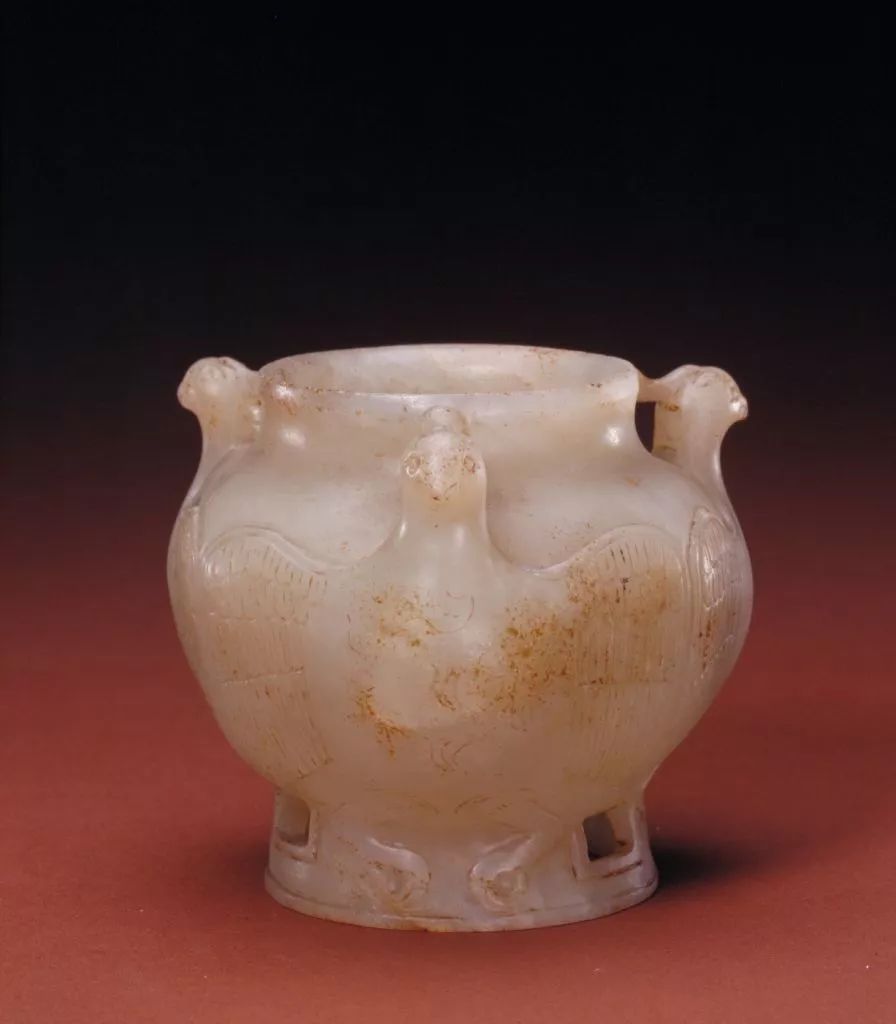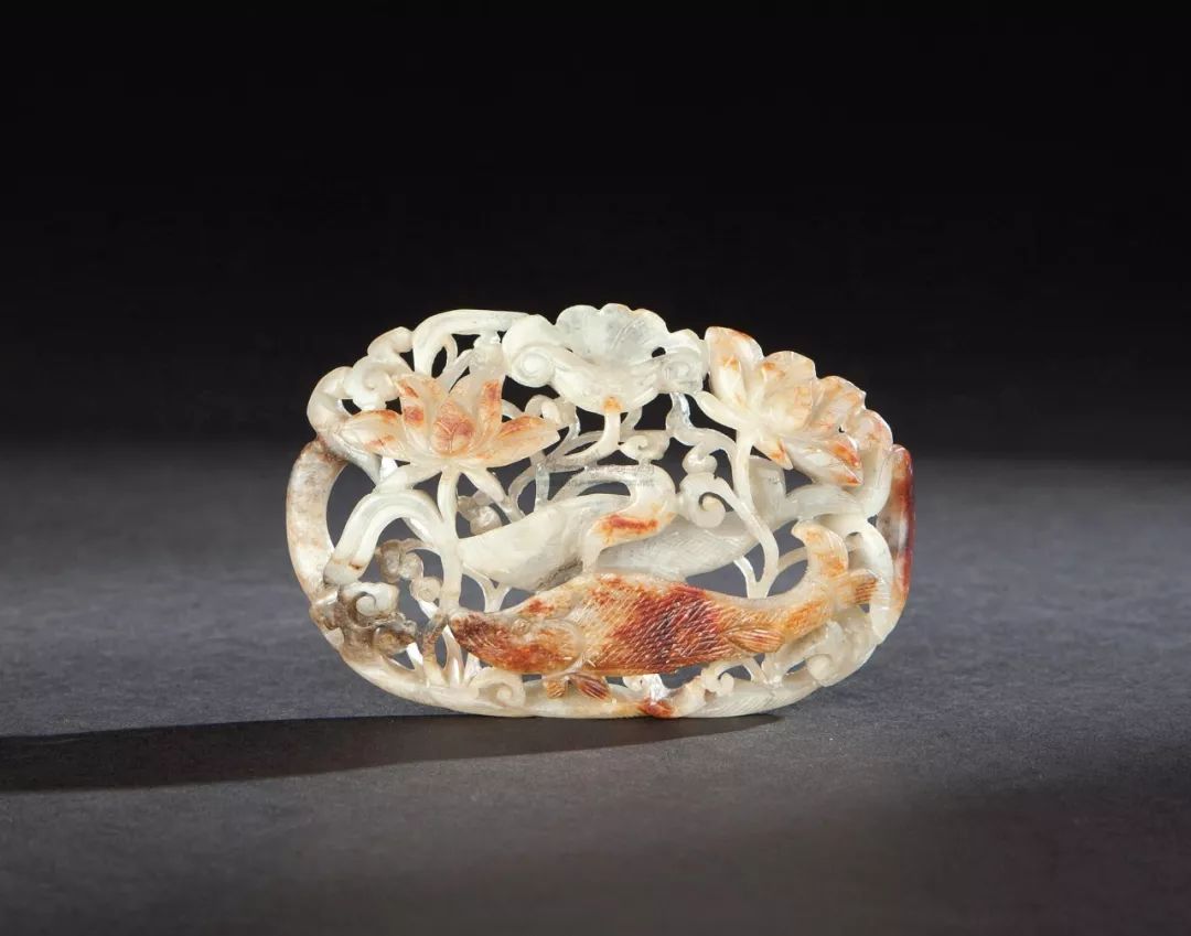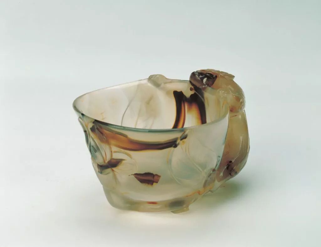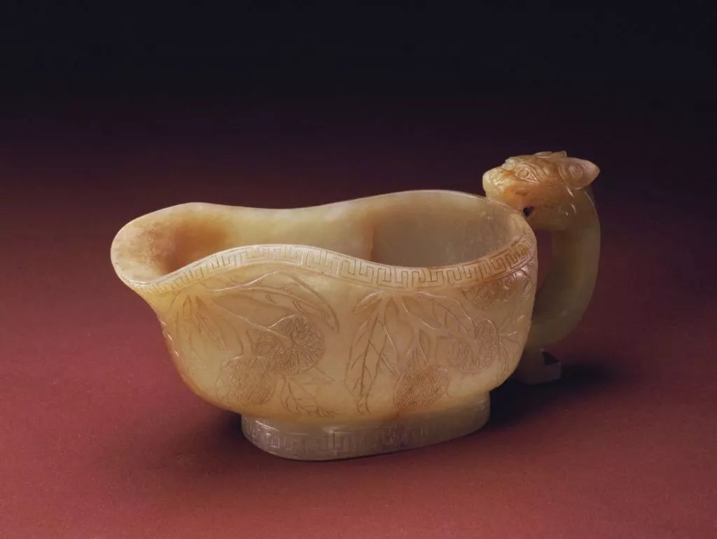 谦谦君子,温润如玉。儒家也讲究“君子必佩玉”,“无故,玉不去身”等。在中国,玉器从旧石器时代至今已有5000多年的历史了,它记录了人类生活,社会的变迁。在唐朝,丝绸之路的畅通无阻,使和田玉料源源不断,玉器的制作得到了很大发展,是继秦汉之后出现的新高峰。因唐朝社会风气的开放,外使、僧侣、工匠集聚于长安,所以,唐朝玉器的世俗题材大大增加,如双喜牡丹、飞天侍女等,都有浓烈的世俗意味。唐代,贵族阶层皆随身佩玉,华丽耀眼,多以人物、动物、花卉等作为审美对象和雕刻的图饰,彰显自己的气质和风范。在纹饰上,有卷云纹、卷草纹等,动物纹有龙、凤、牛等,植物纹有石榴、莲花等;在品种方面,更具实用性的玉器增多:长杯、牛头杯、碗等;在雕刻技艺上,吸取当时的雕塑和绘画手法,运用传统的雕刻技艺,大量使用阴刻细线。
