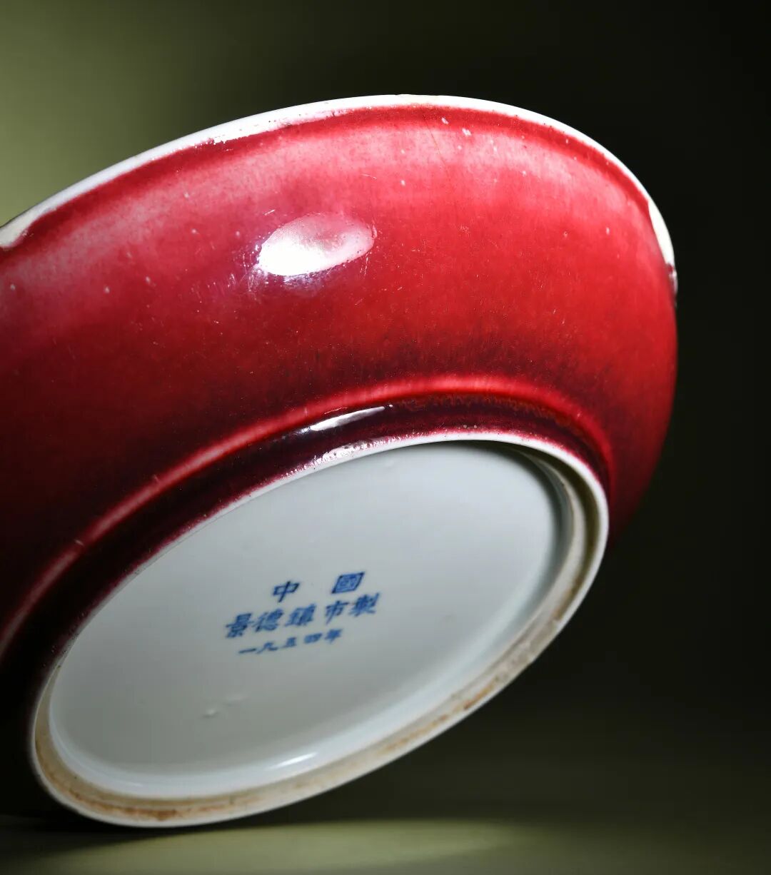 1954年 中国景德镇陶瓷研究所制红釉盘