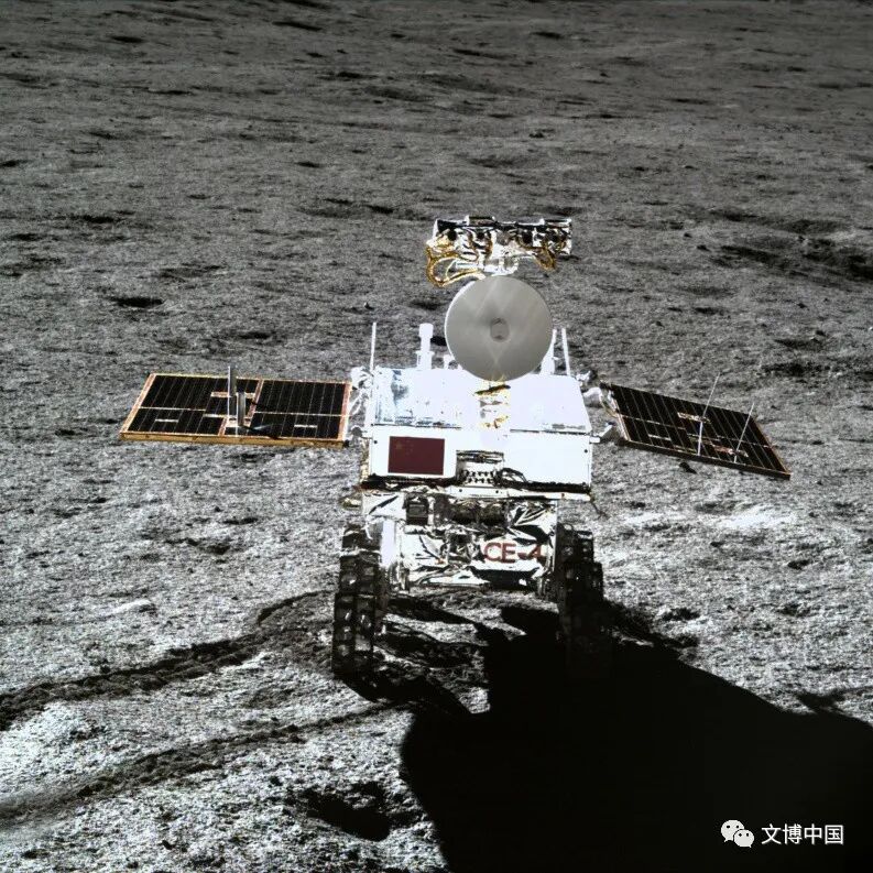 我们将目光转到现代,继2007年10 月24日、2010年10月1日“嫦娥一号”和“嫦娥二号”这两颗人造卫星相继在西昌卫星发射中心成功发射升空后,2013年12月2日,中国科学家在 西昌卫星发射中心成功将“嫦娥三号” 探测器送入轨道。2013年12月15日, “嫦娥三号”着陆器与巡视器分离,中国首辆月球车“玉兔号”巡视器顺利驶抵月球表面。到2018年12月8日,中国在西昌卫星发射中心再次成功发射“嫦娥四号”探测器,开启了月球探测的新旅程。2019年1月3日,“嫦娥四 号”探测器成功着陆,第二辆月球车“玉兔二号”巡视器顺利到达月球表面,这两张是“嫦娥四号”(图12)和“玉兔二号”(图13)互拍的图片。