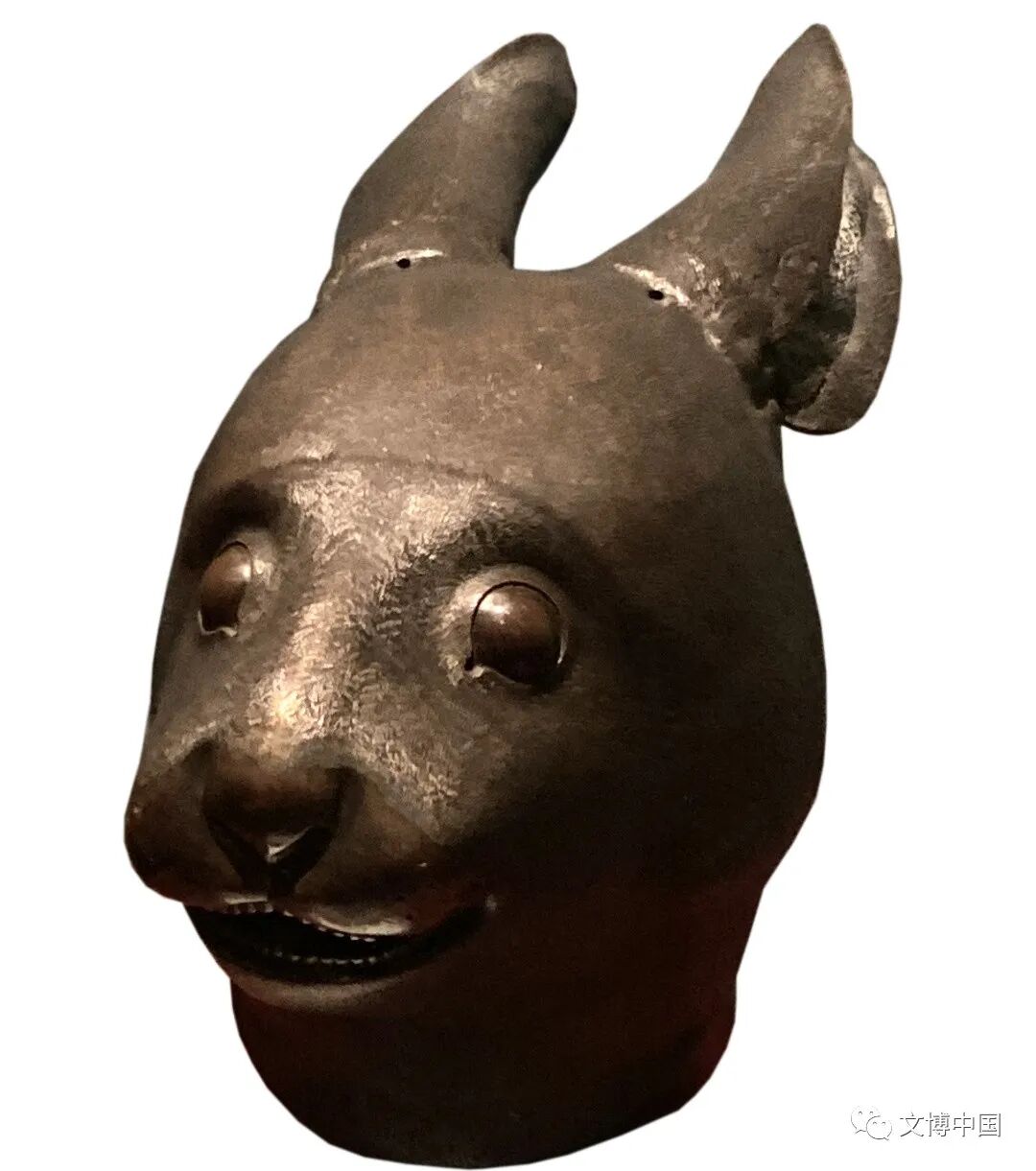 圆明园的清代铜兔首为双目圆睁, 鼻隆起,嘴微张,双耳向后竖起,脸部以细密阴线刻出毛发(图7)。